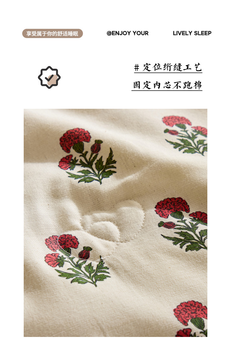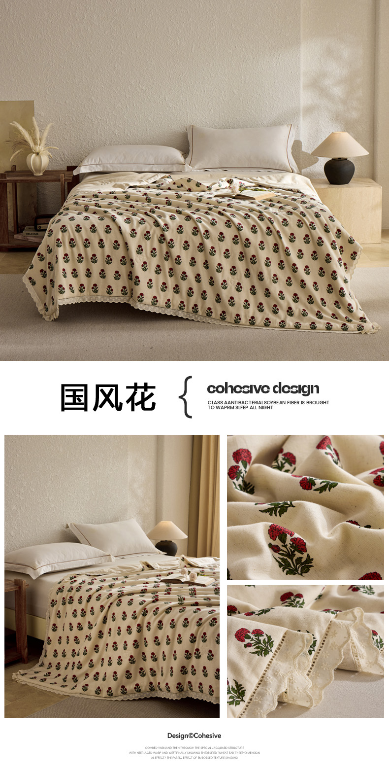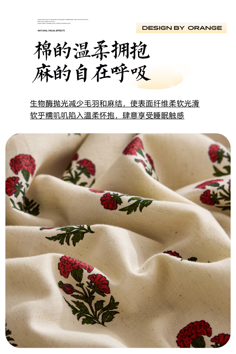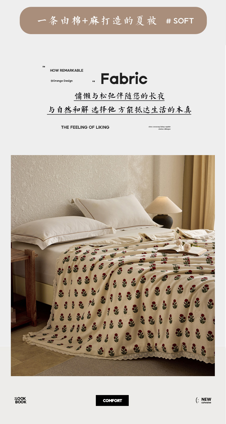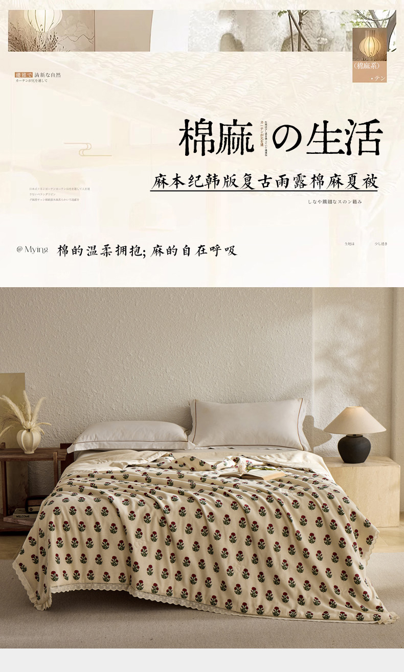 商品名称:蜜柚 2026新款麻本纪韩版复古雨露棉麻夏被夏凉被空调被 国风花
