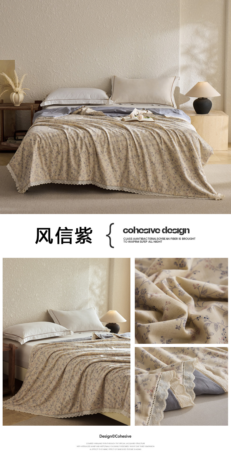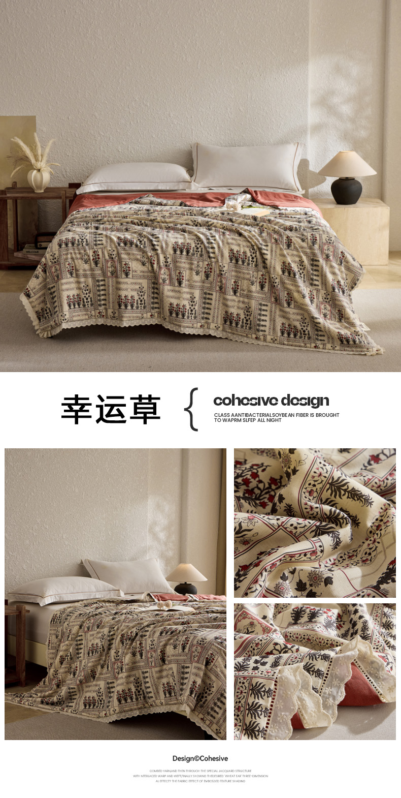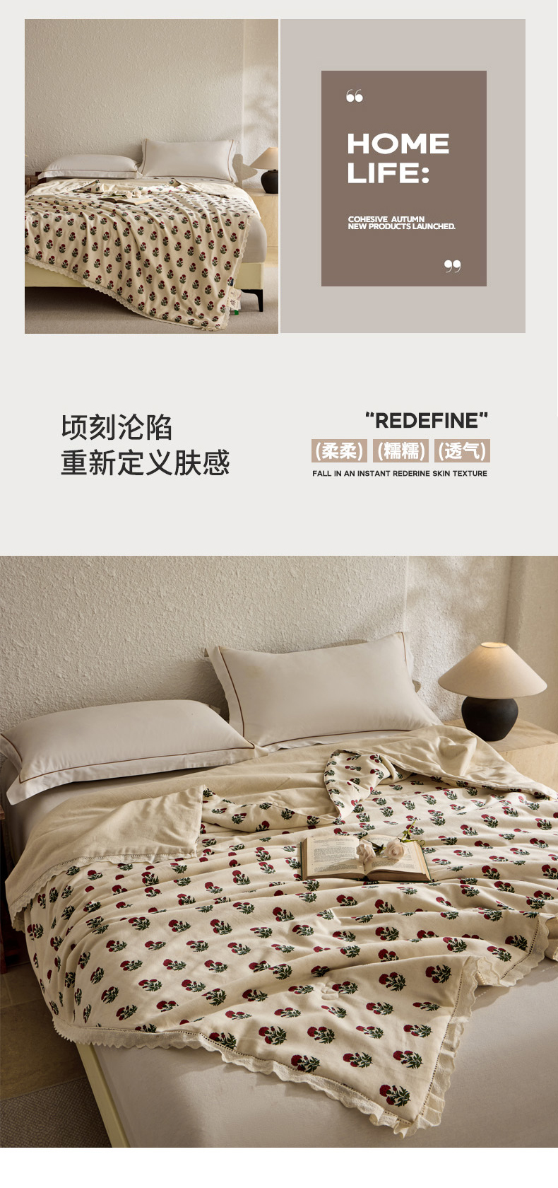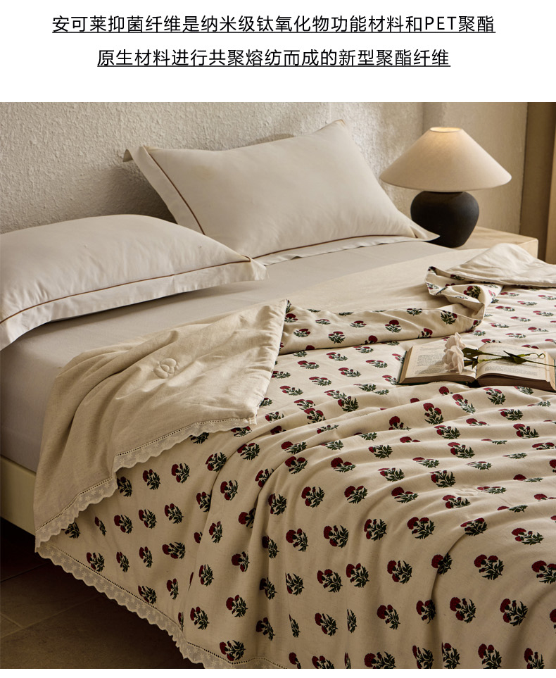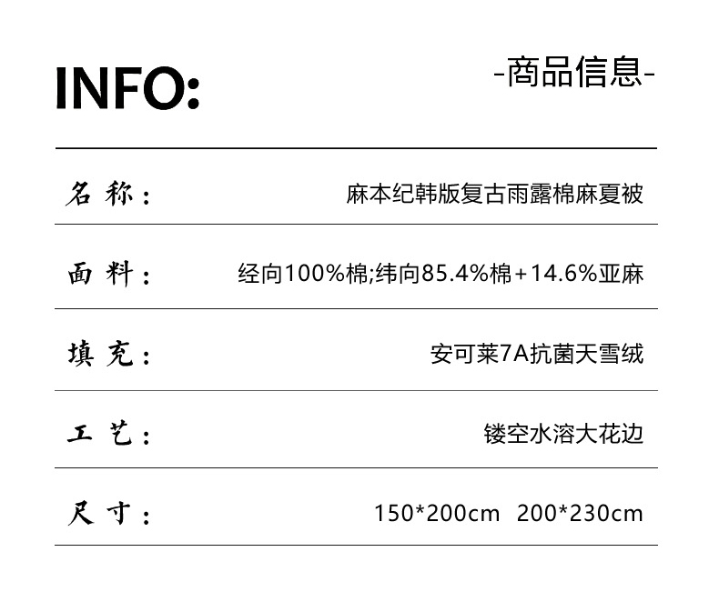 商品名称:蜜柚 2026新款麻本纪韩版复古雨露棉麻夏被夏凉被空调被 国风花