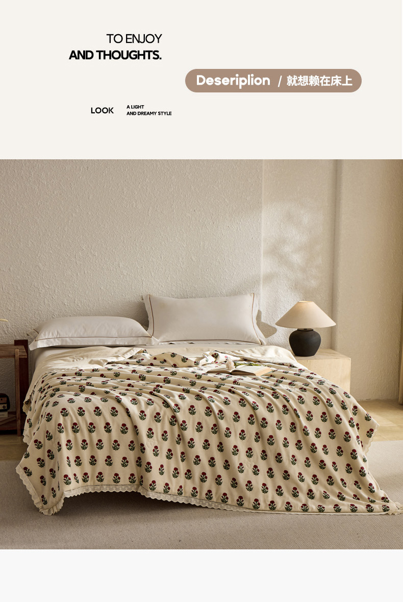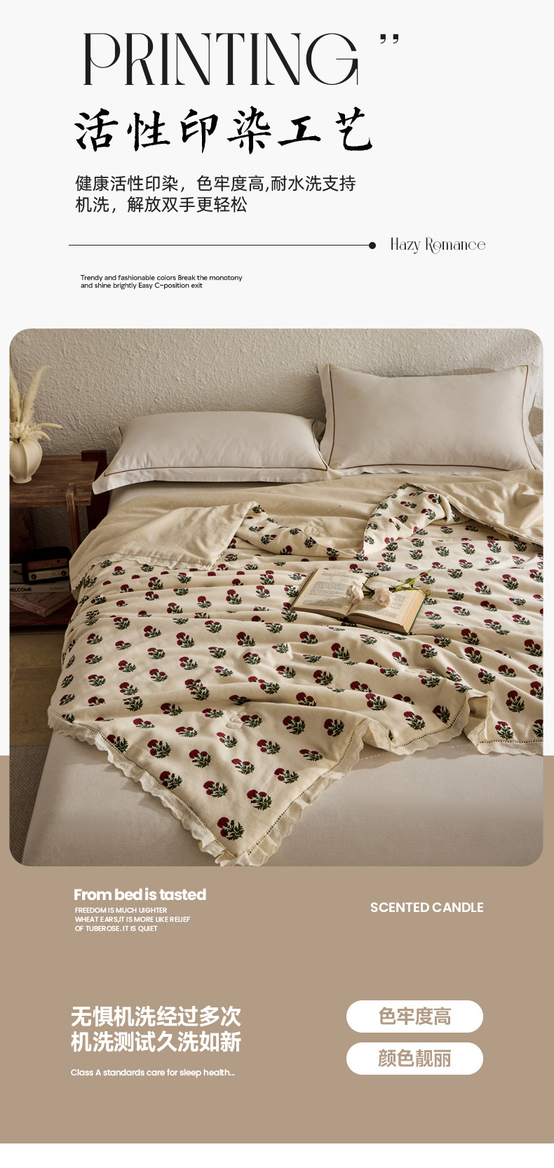 蜜柚 2026新款麻本纪韩版复古雨露棉麻夏被夏凉被空调被 国风花