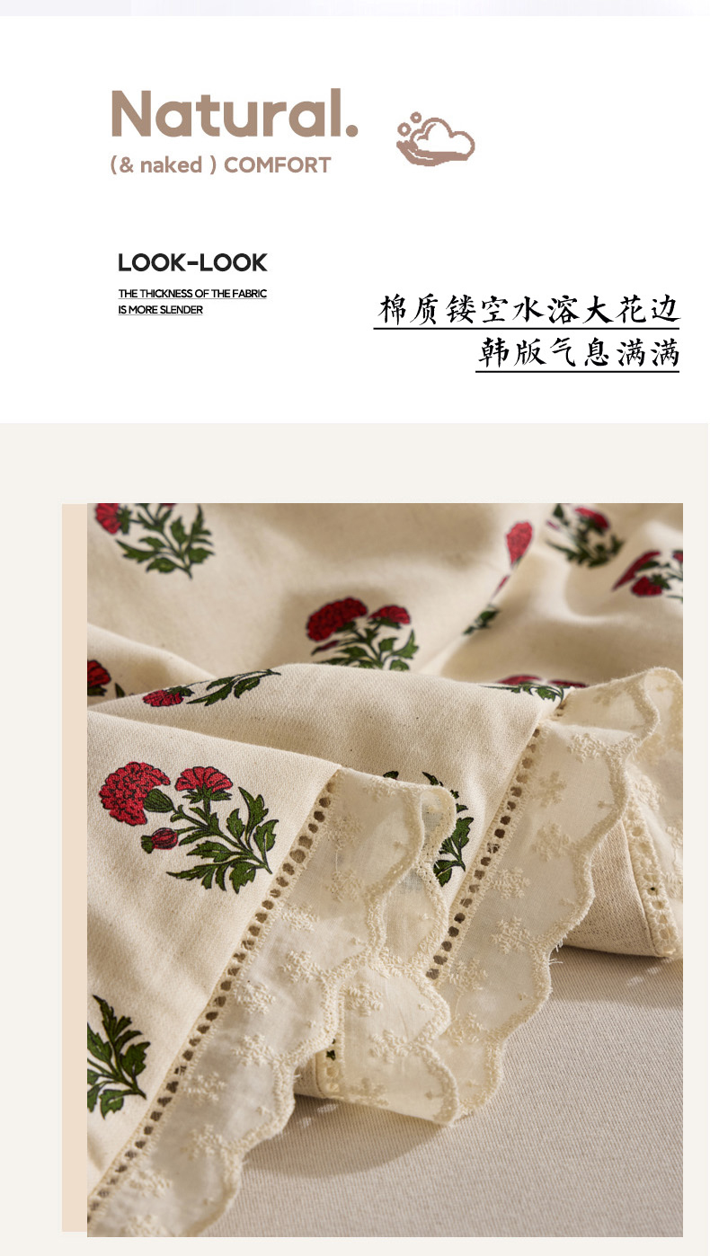 (总)蜜柚 2025新款色织水洗棉贴布花边款四件套-童趣,童趣-卡其,童趣-浅玉,童趣-洋气红