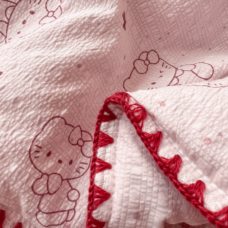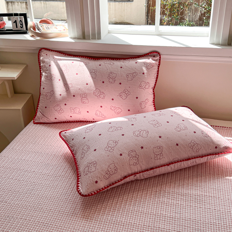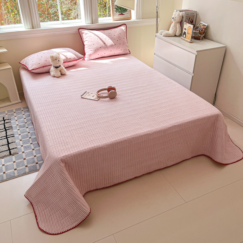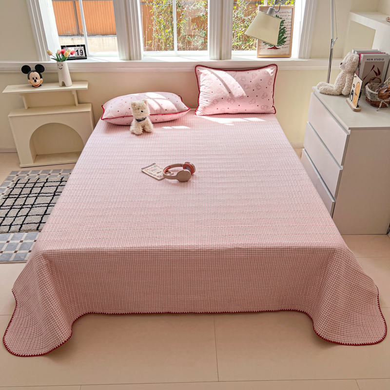 禾沐 2026新款泡芙纱三角针床盖夏被四件套 描线小猫粉