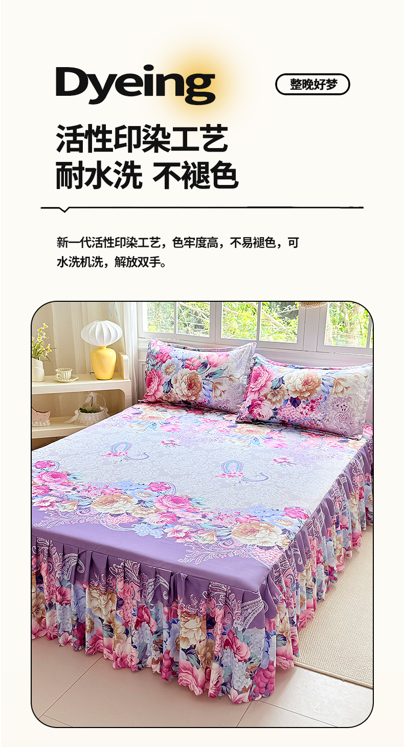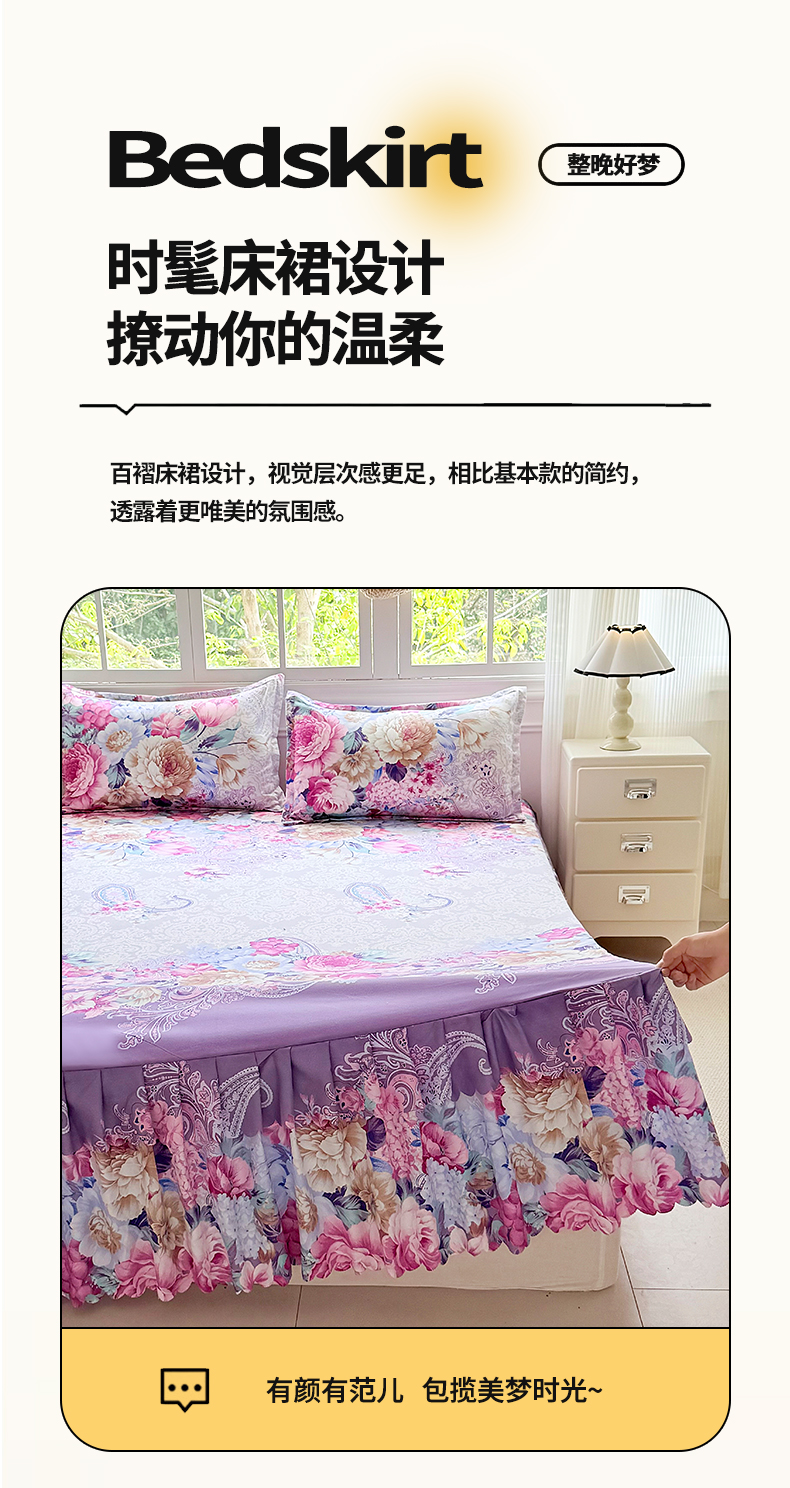 当前位置: 91家纺网 > 商品网购 > 床品套件 > 三件套 > 亿佳人 2026新款芦荟棉单床裙床裙单件芦荟棉床裙三件套 花开富贵