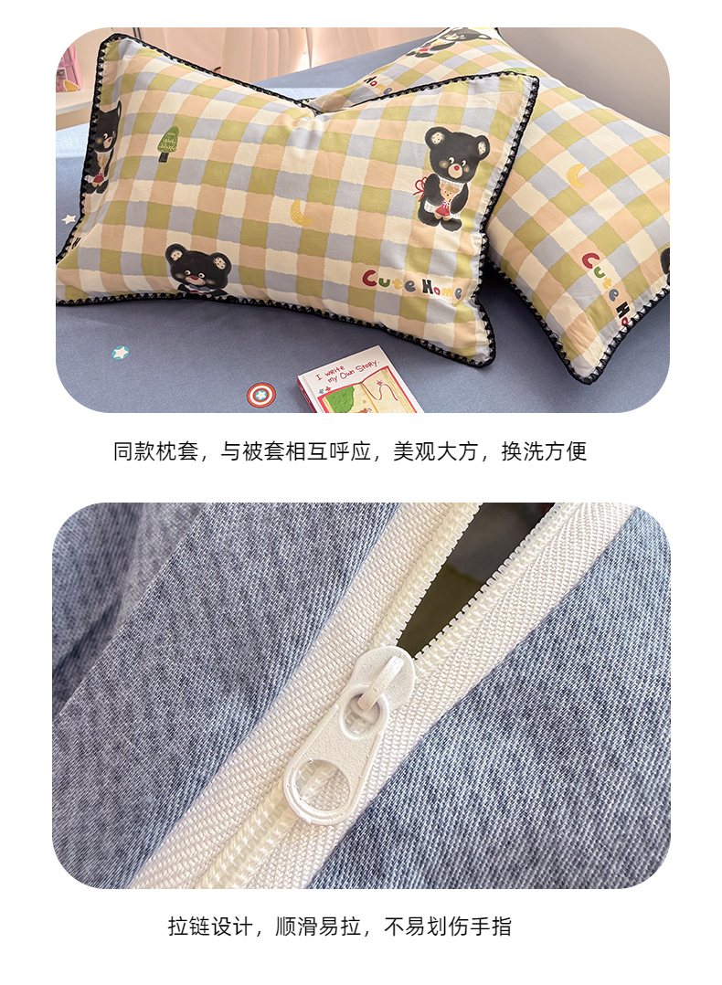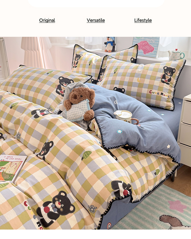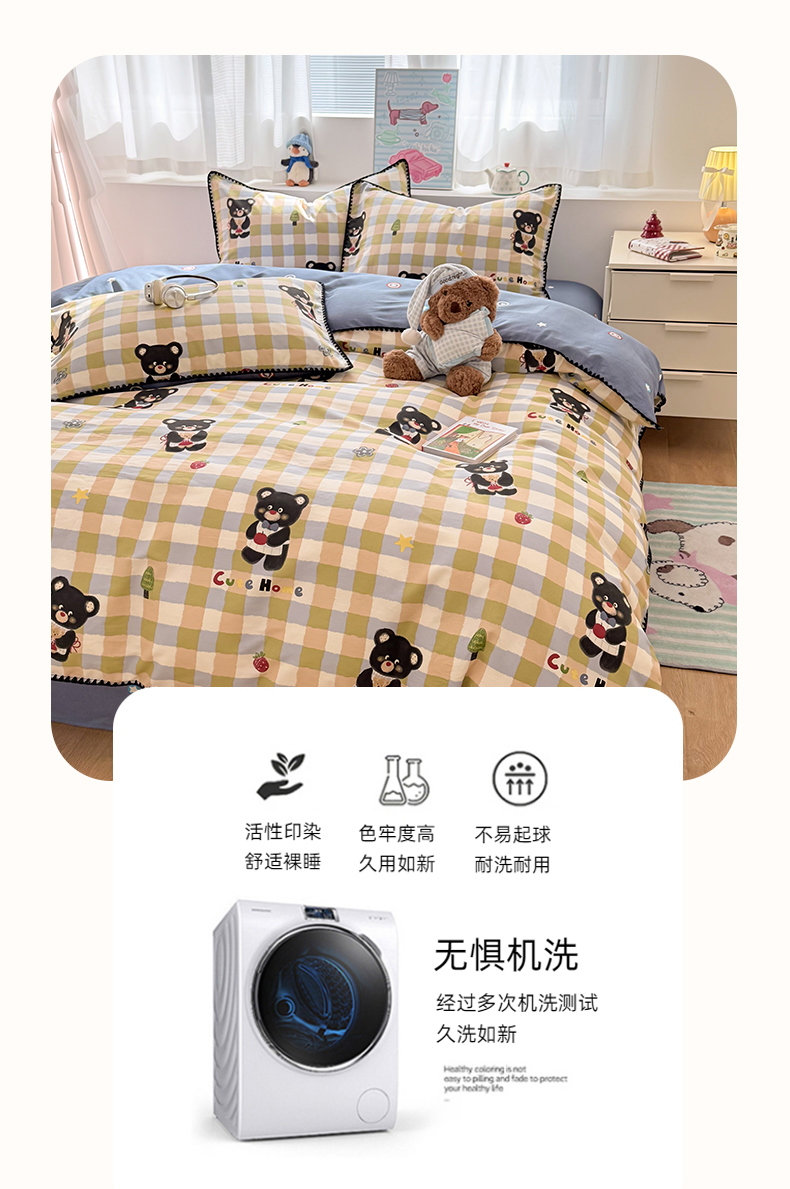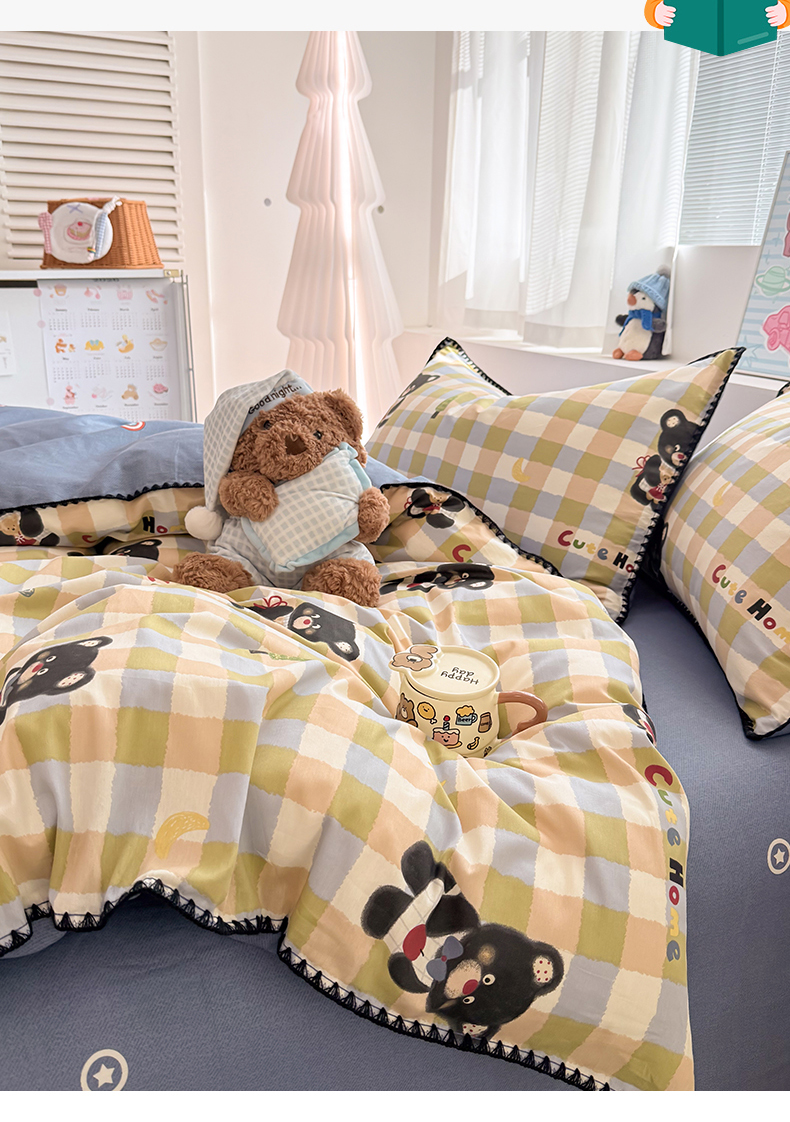 当前位置: 91家纺网 > 商品网购 > 床品套件 > 四件套 > 全棉普通四件套 > 简宜家居(朝初家纺) 2026新款贝壳边卡通可爱纯棉全棉四件套 苹果熊格子