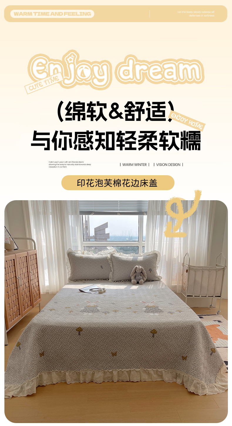 • 91家纺网 家纺一手货源 找家纺 (总)爱彼家纺 2026新款印花泡芙棉花边床盖三件套-泡芙床盖,花边-含花诗放,花边-爱心家园,花边-花样年华,花边-可爱熊,花边-圣诞花语,花边-温馨时光,花边-心心相连