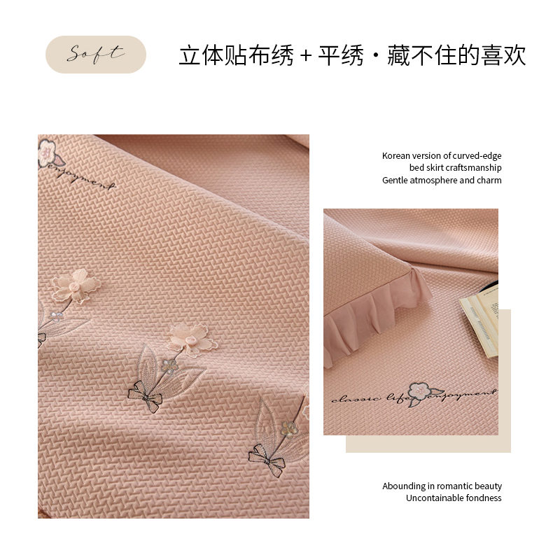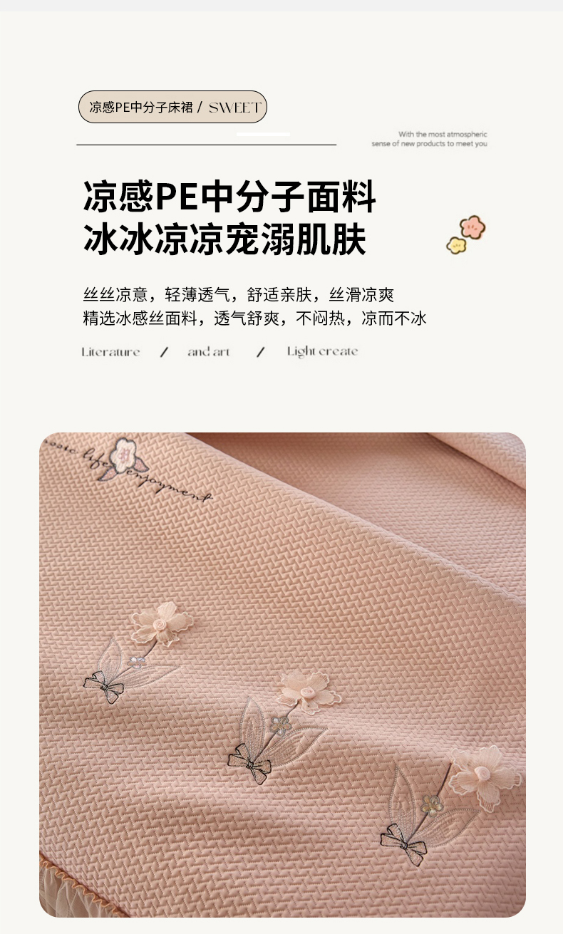 (总)金绣美居 2026新款PE高分子凉感席聚乙烯冰感床裙款凉席三件套-韩式系列,韩恋,花朝,棠梨,星落,迎风,郁香