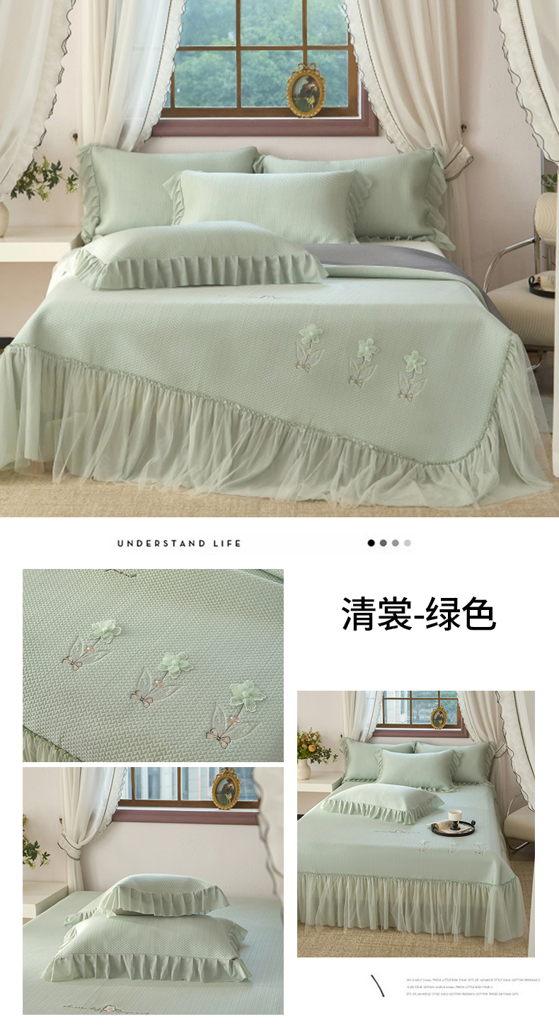 (总)金绣美居 2026春夏新款绣花款床裙凉席席子空调软席三件套-清裳