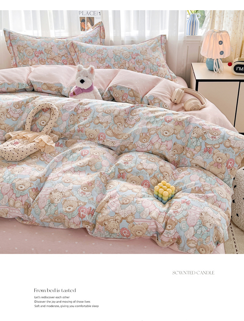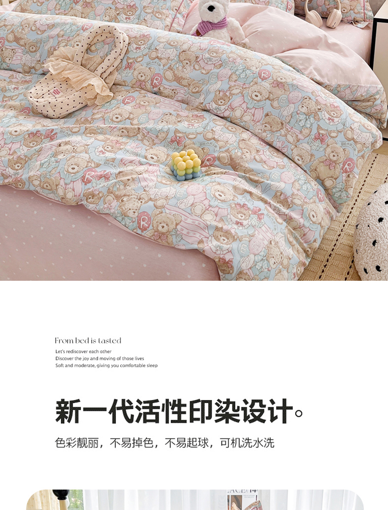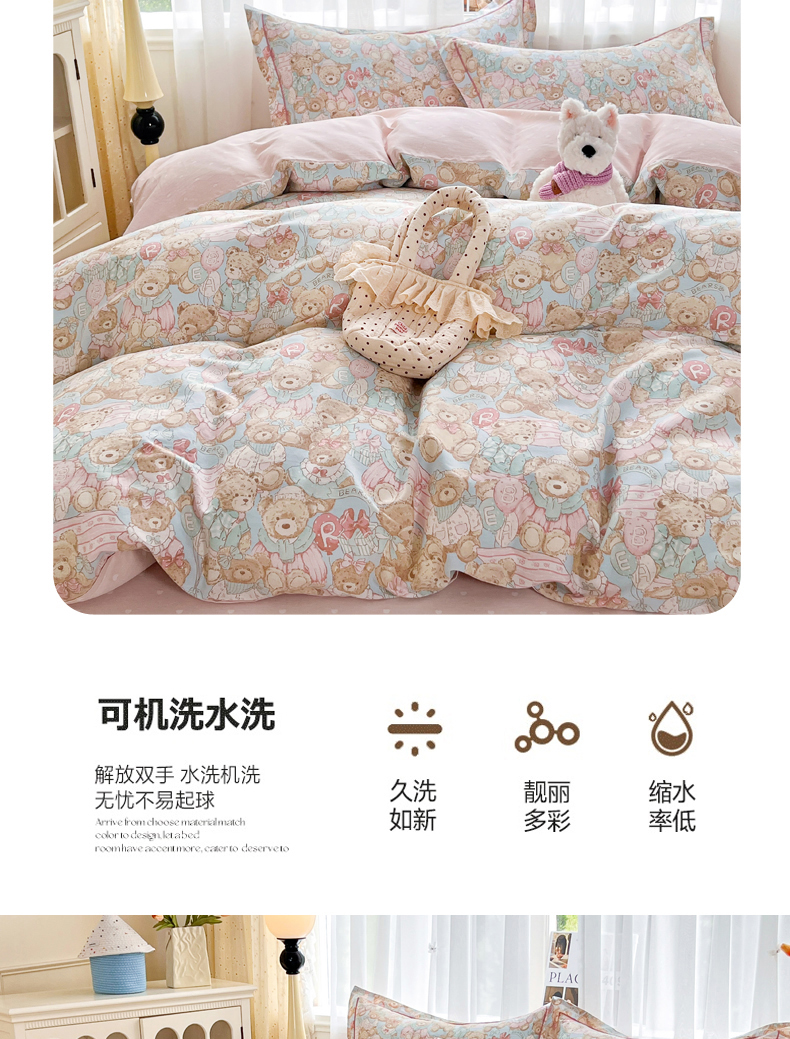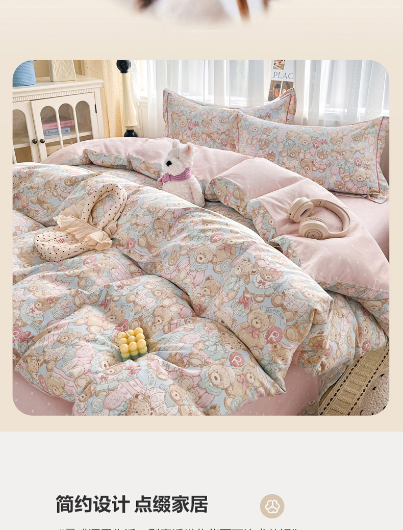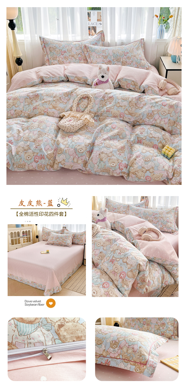 当前位置: 91家纺网 > 商品网购 > 床品套件 > 四件套 > 全棉普通四件套 > 美织缘家纺 2026直播爆款一字绣吊边床单款纯棉全棉四件套印花百分百(喷气高品质) 皮皮熊-蓝