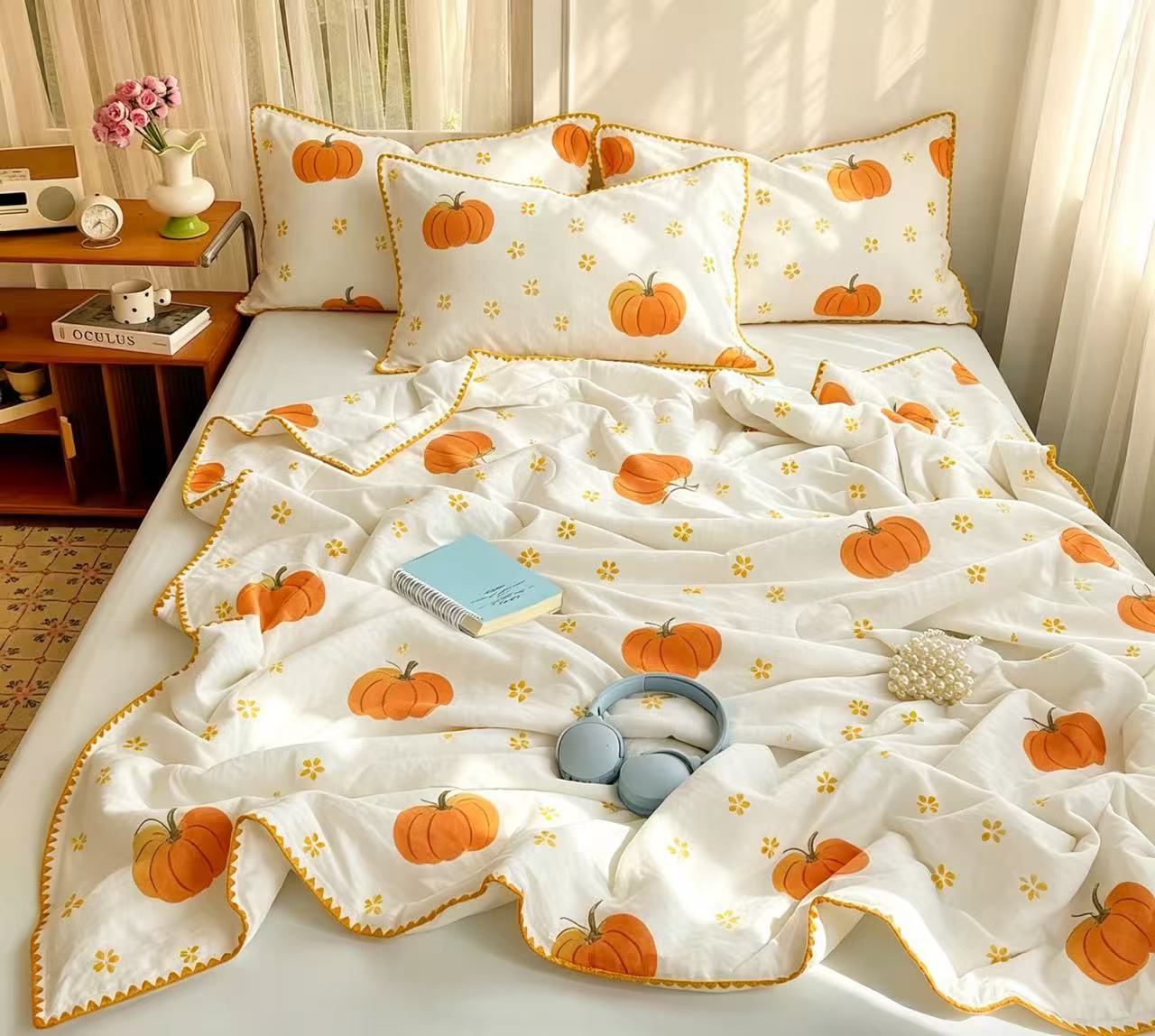 禧多家纺 2024新款亲肤舒适印花云纱棉豆豆被子被芯 花语,花语