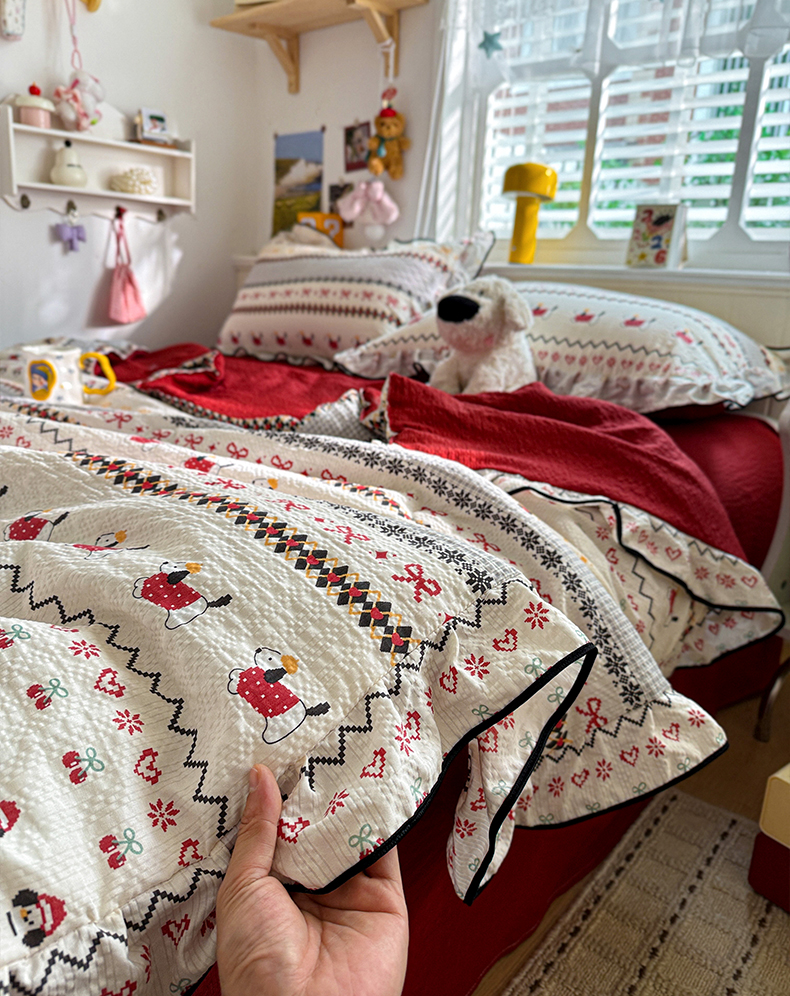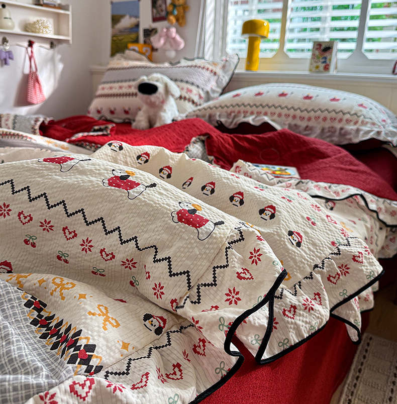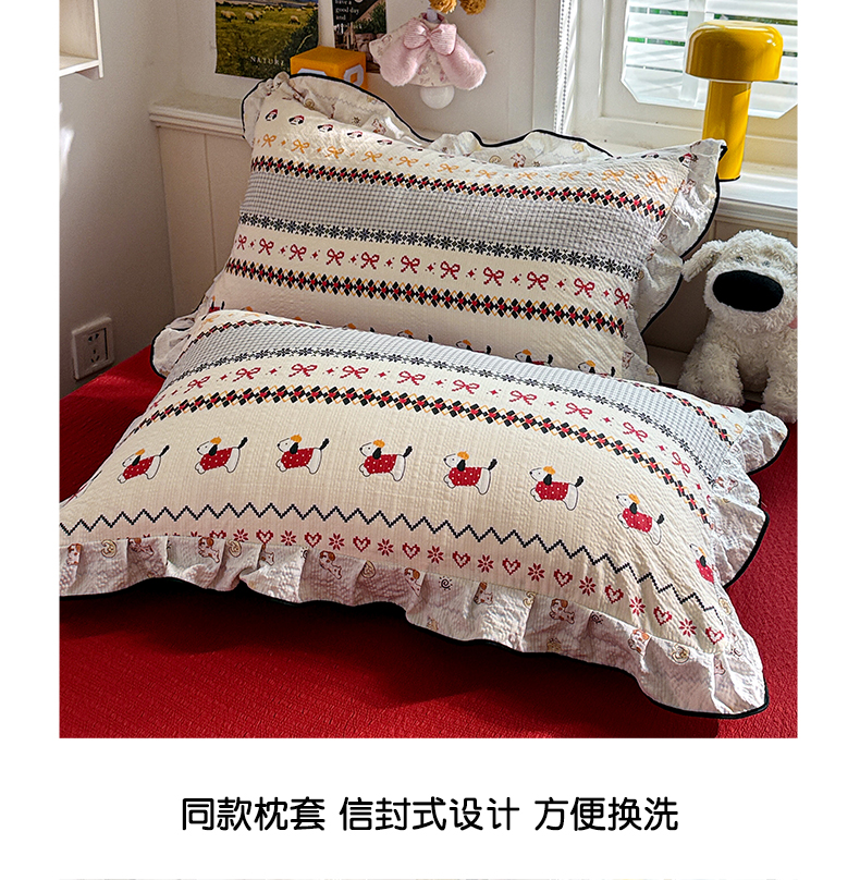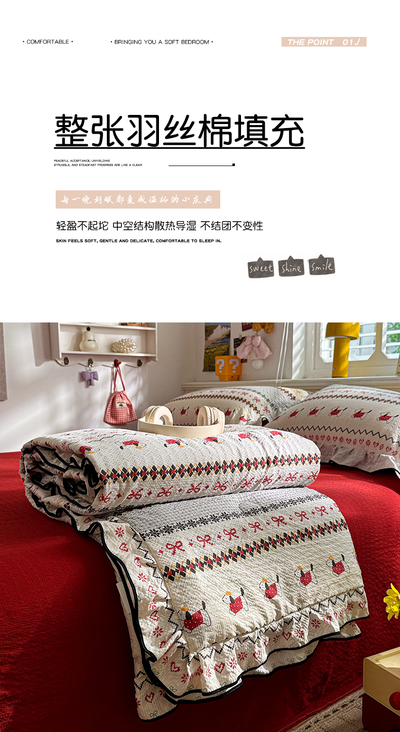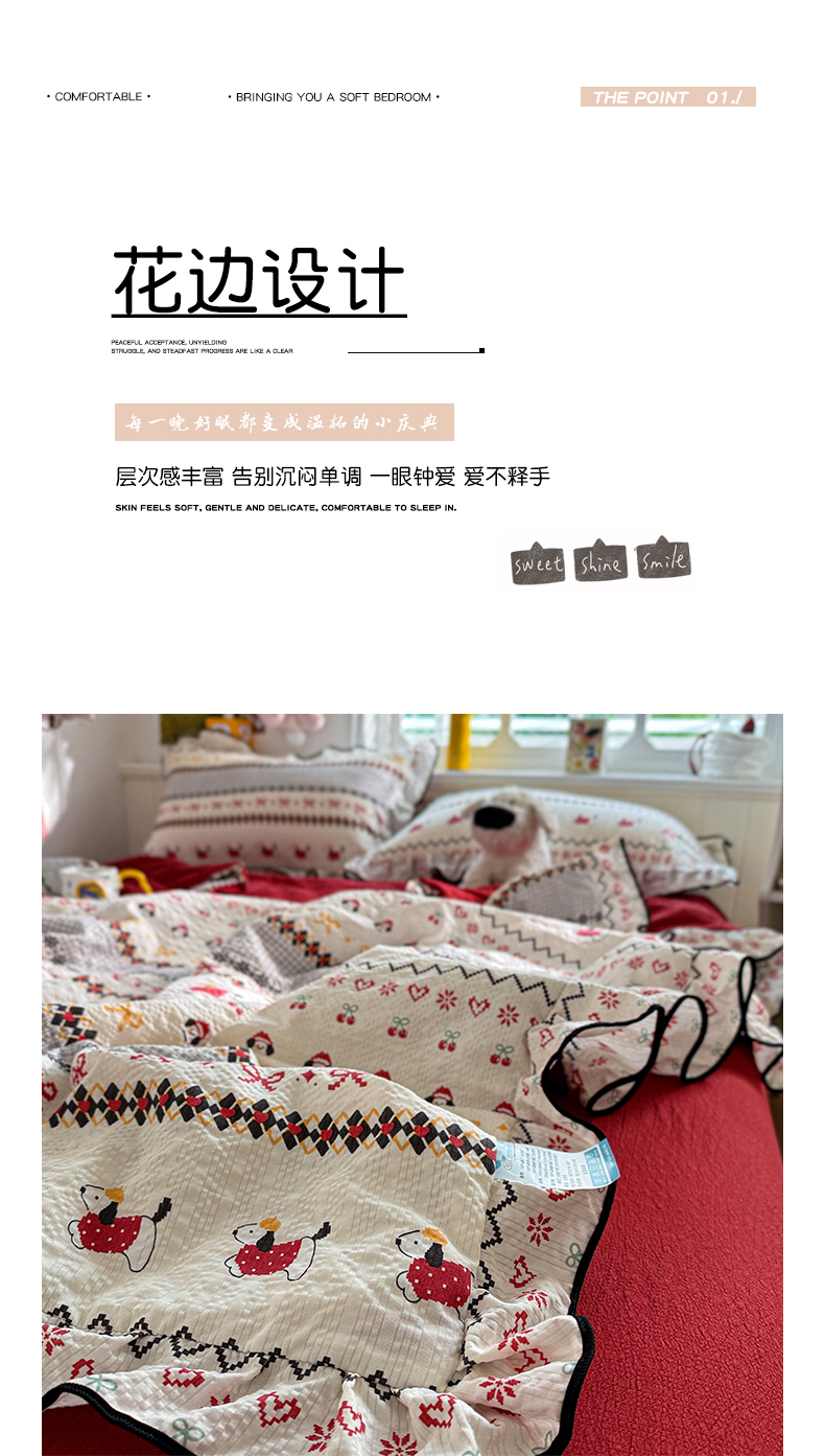 水墨江南 2026新款泡芙纱花边夏被四件套 动感小狗