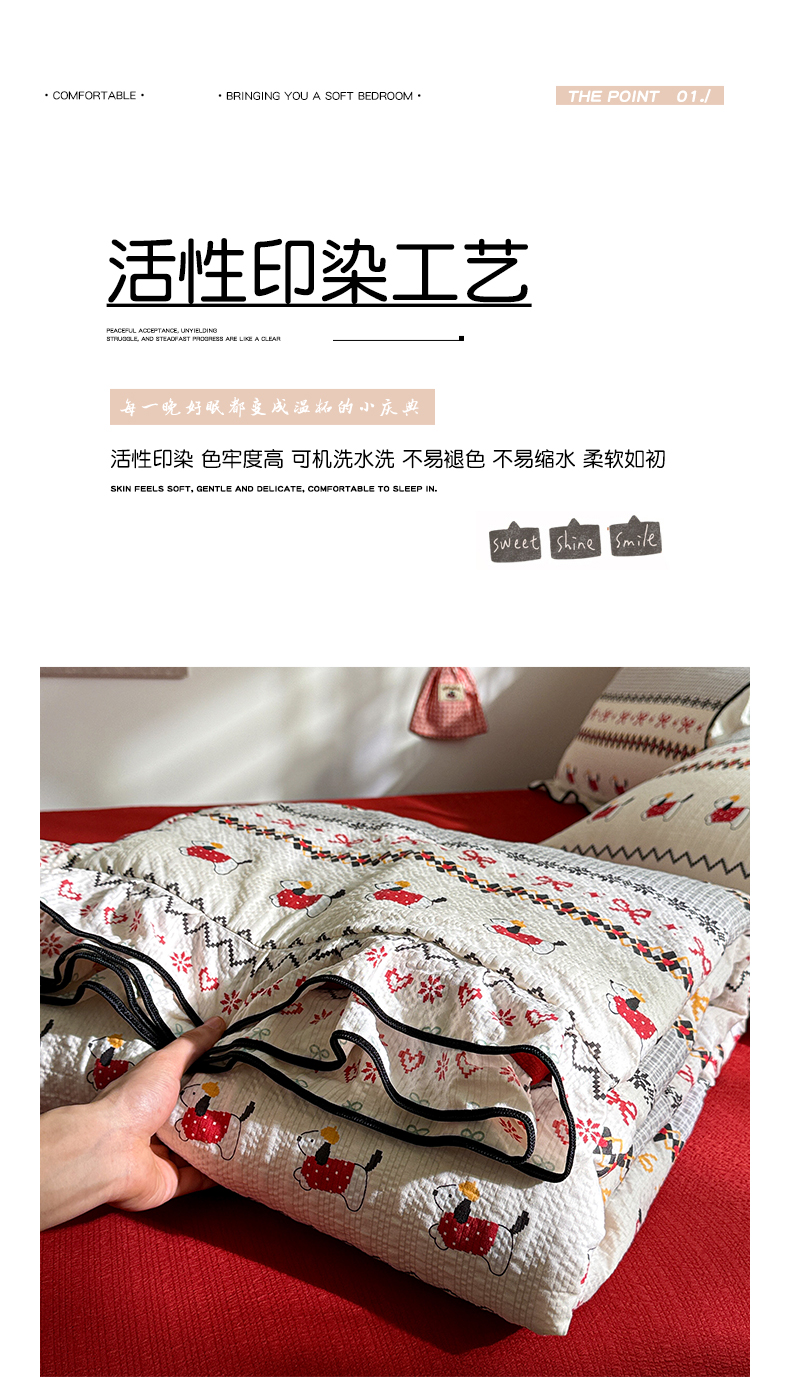 商品名称:水墨江南 2026新款泡芙纱花边夏被四件套 动感小狗