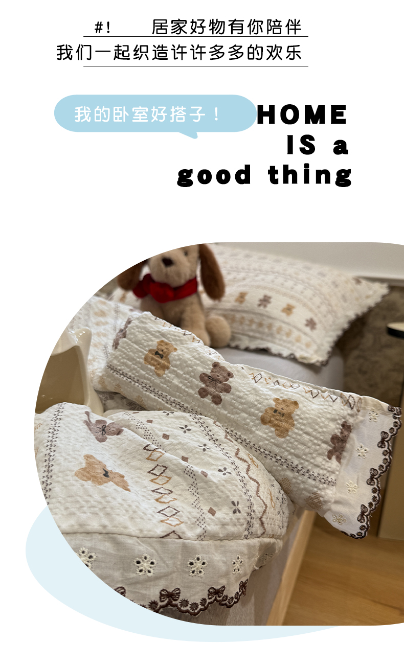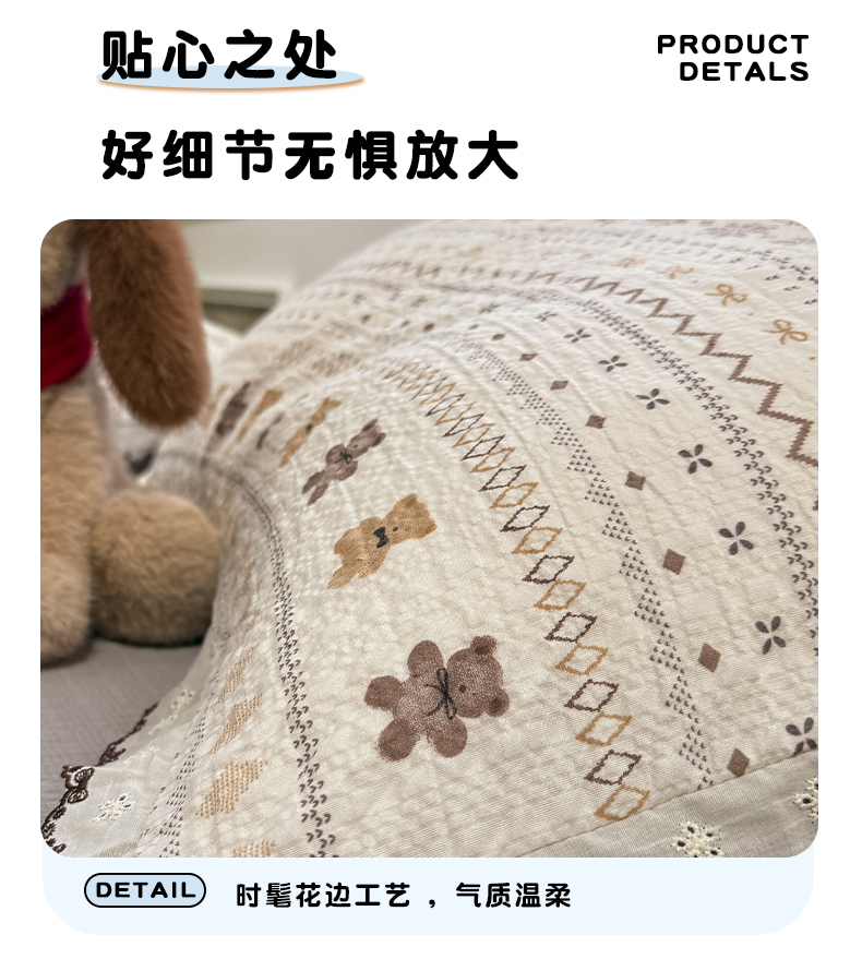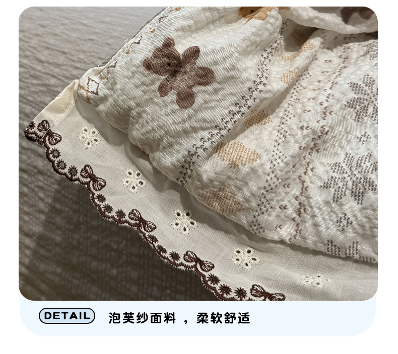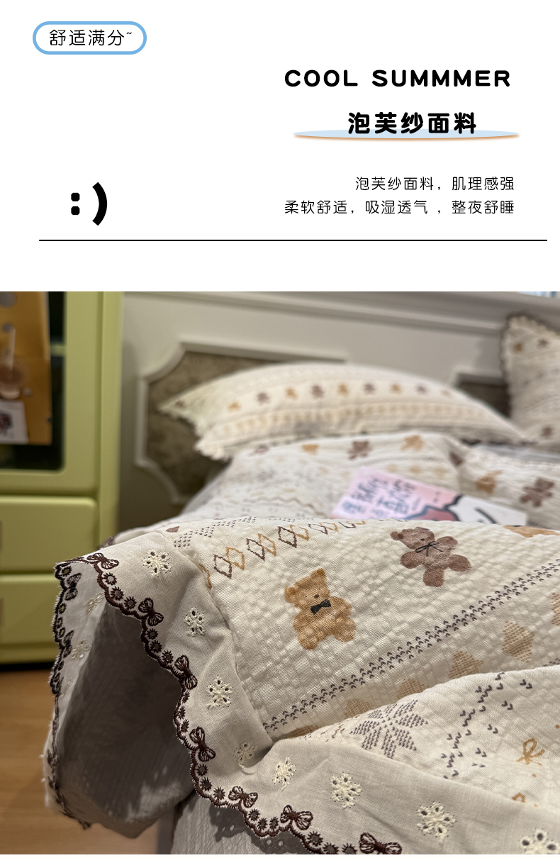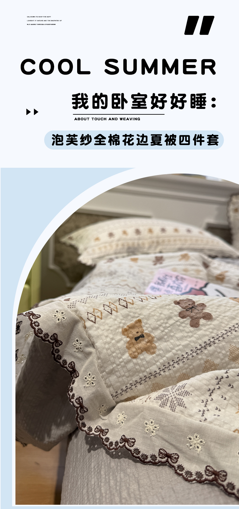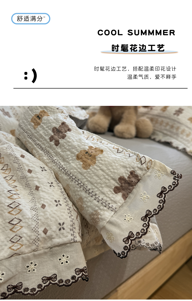 商品名称:水墨江南 2026新款泡芙纱全棉花边夏被四件套 花边夏被-咖啡小熊