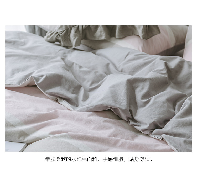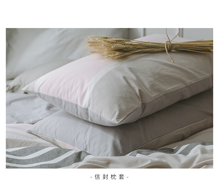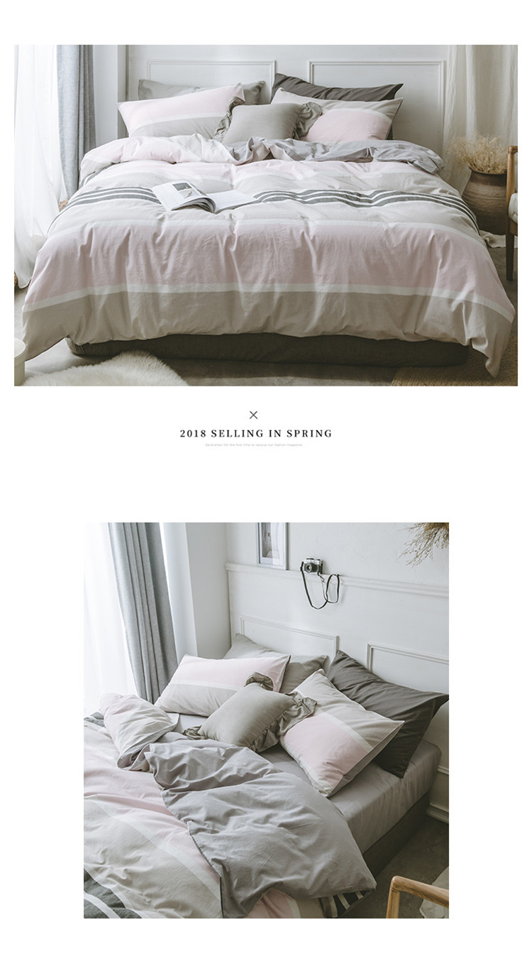 早春全棉色织水洗套件电子图浅粉条纹