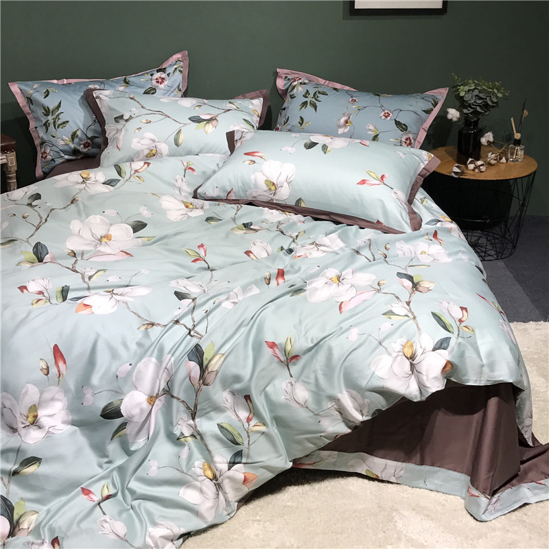 (总)优然居家纺 2025新款50支全棉纯棉印花法式双头木耳边四件套,觅棠,莫妮卡艾绿,莫妮卡罗兰,慕斯粉,薇薇安
