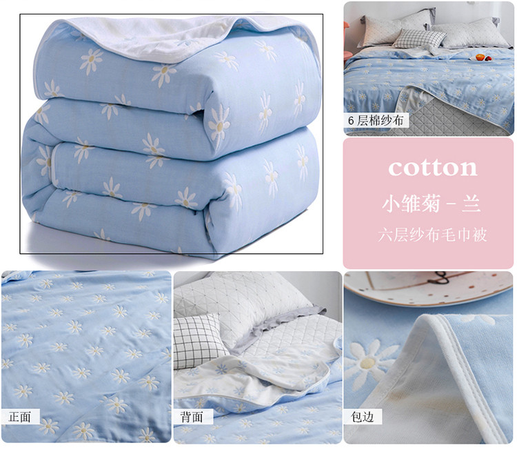 商品名称:朴尔家纺 六层全棉纱布毛巾被 小雏菊-兰