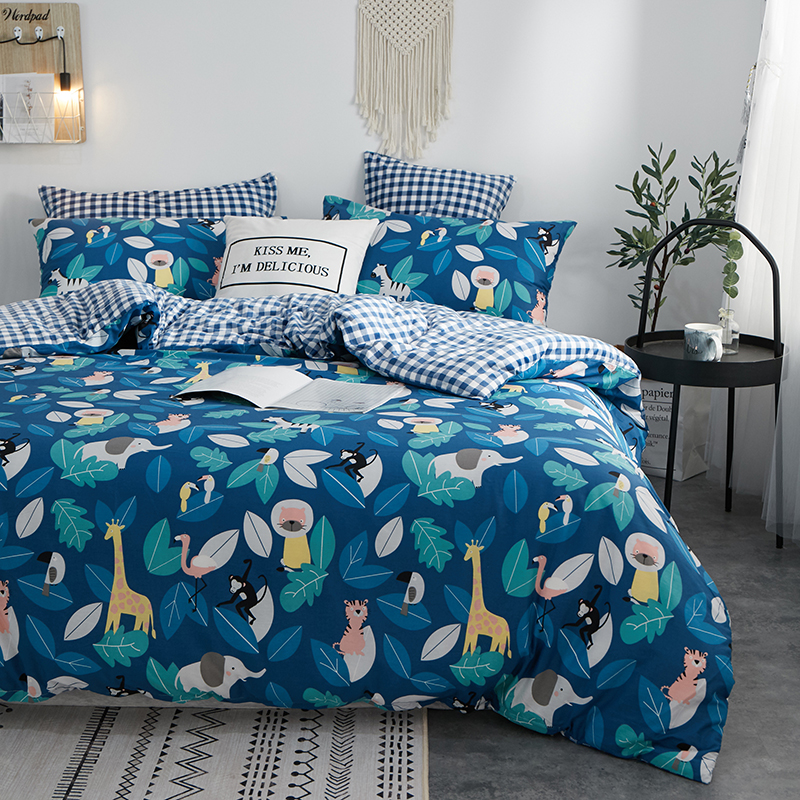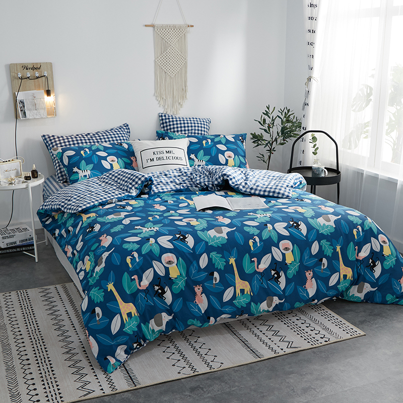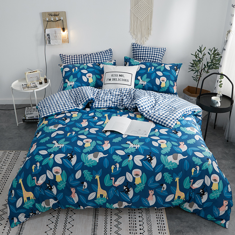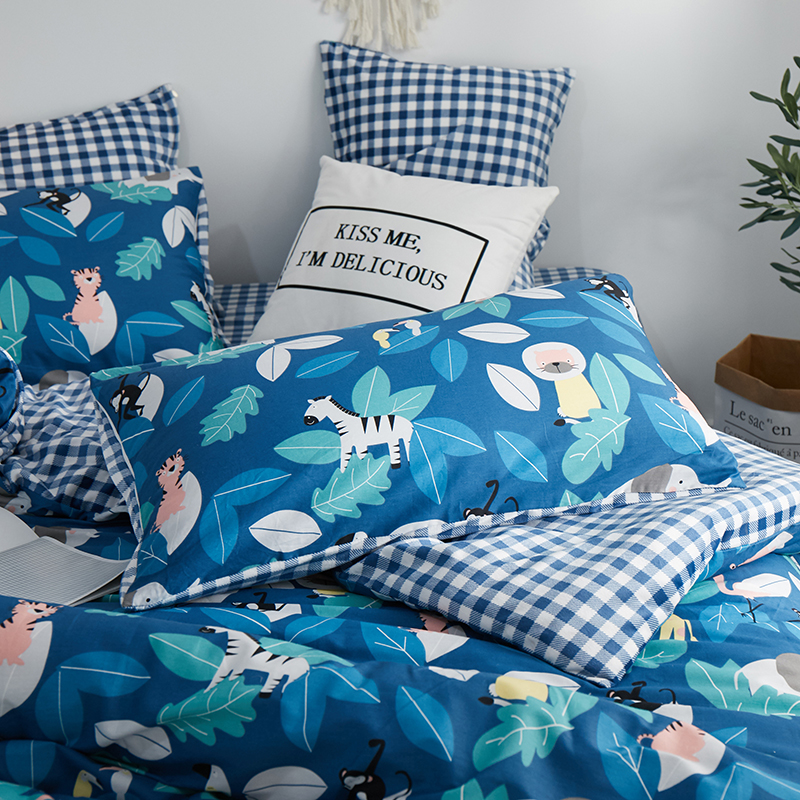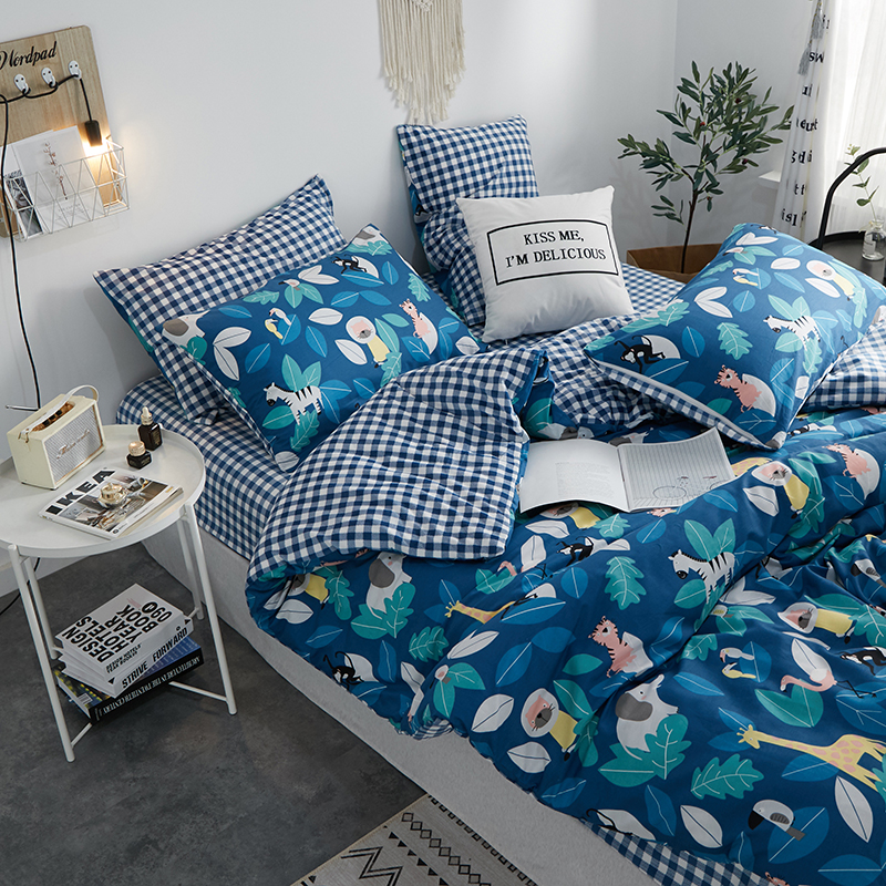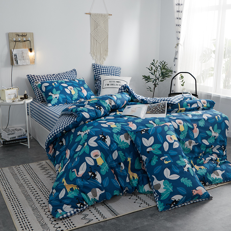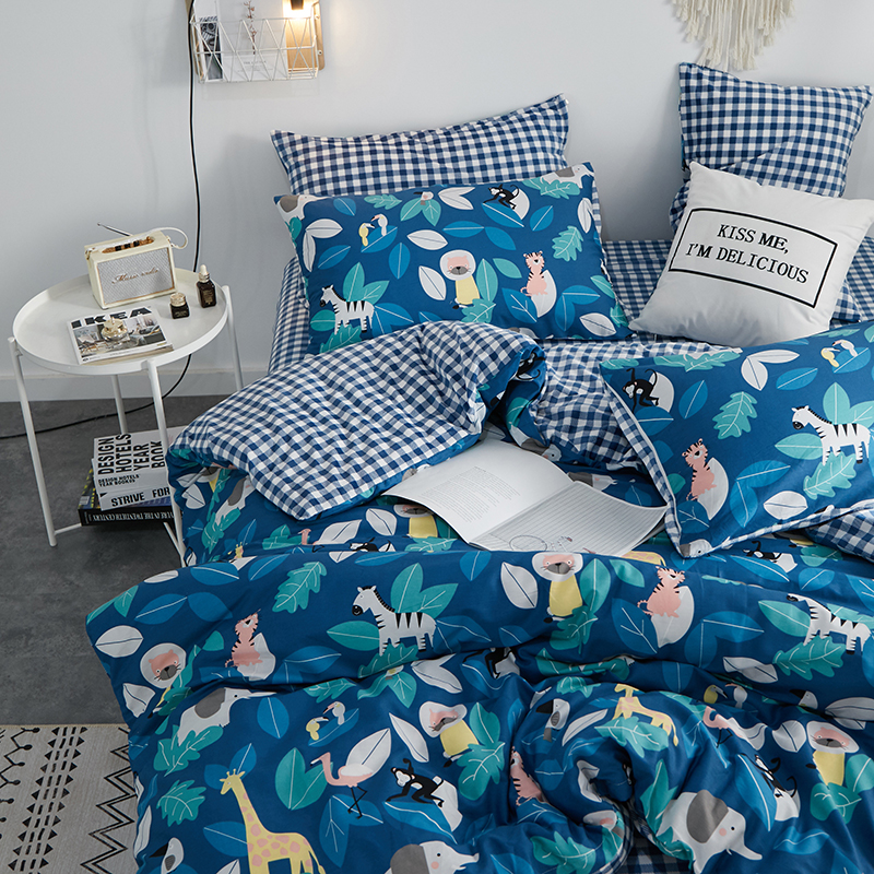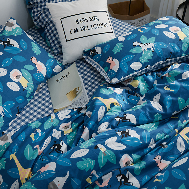 一米阳光 2019新款A棉B格子绒四件套 格绒-动物派对