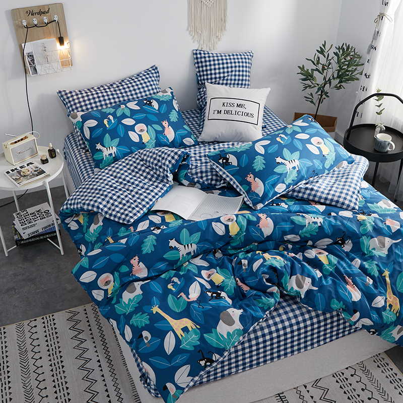 商品名称:一米阳光 2019新款A棉B格子绒四件套 格绒-动物派对
