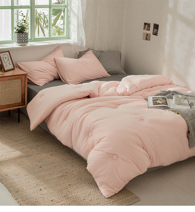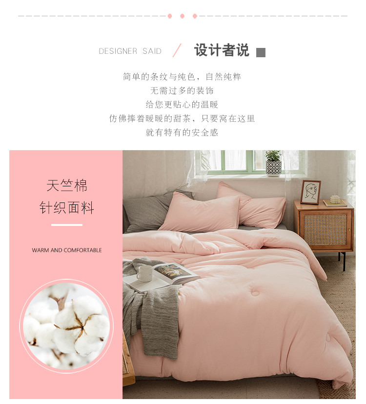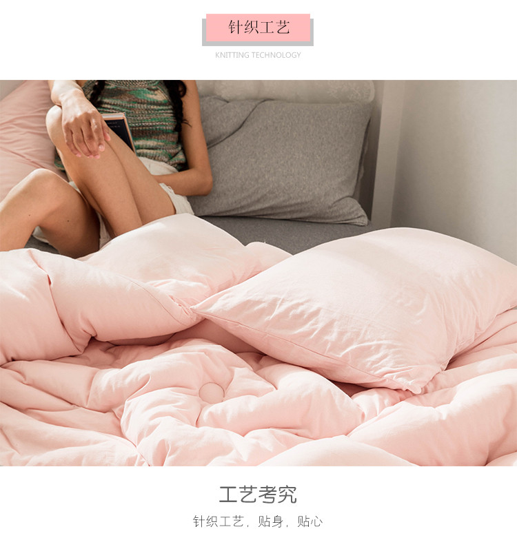 • 91家纺网 家纺一手货源 找家纺 寐眠 2021新款天竺棉针织棉春秋被冬被 针织纯色浅粉
