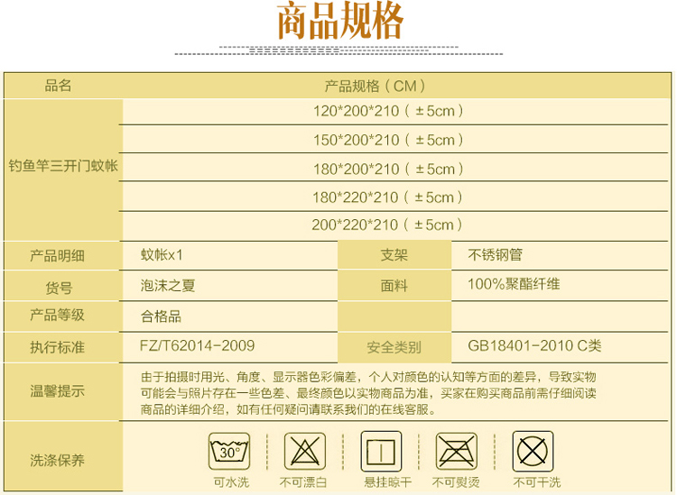 商品名称:(总)伊而梦蚊帐 落地蚊帐8826泡沫之夏