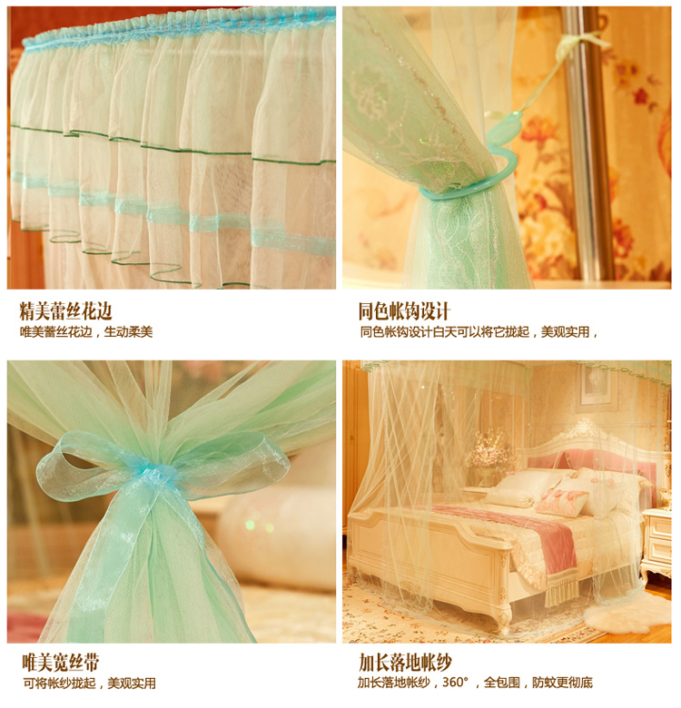 (总)伊而梦蚊帐 2025新款三开门刺绣花边T型A类母婴级加高坐床款蚊帐升级版围栏款防摔支架903款全底款床笠款,903 海岛蓝,903 月影灰,903 玫瑰粉,903 奶油黄,903 优雅绿