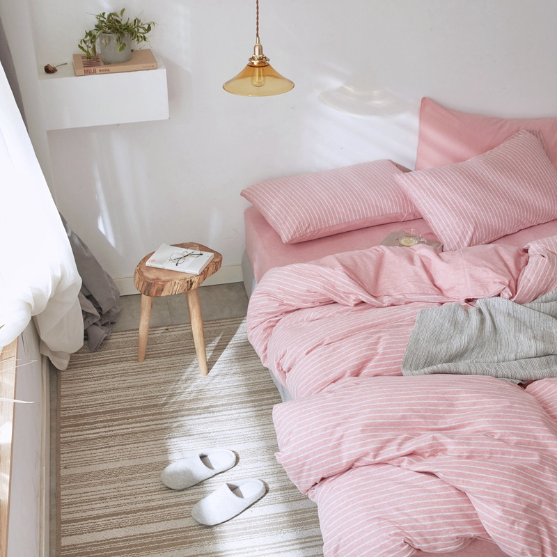 当前位置: 91家纺网 > 商品网购 > 床品套件 > 四件套 > 针织棉四件套 > 华超针织 2021新款针织四件套 混粉细条