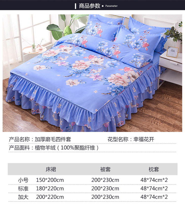 商品名称:梦柏 2020新款加厚磨毛四件套小版 幸福花开