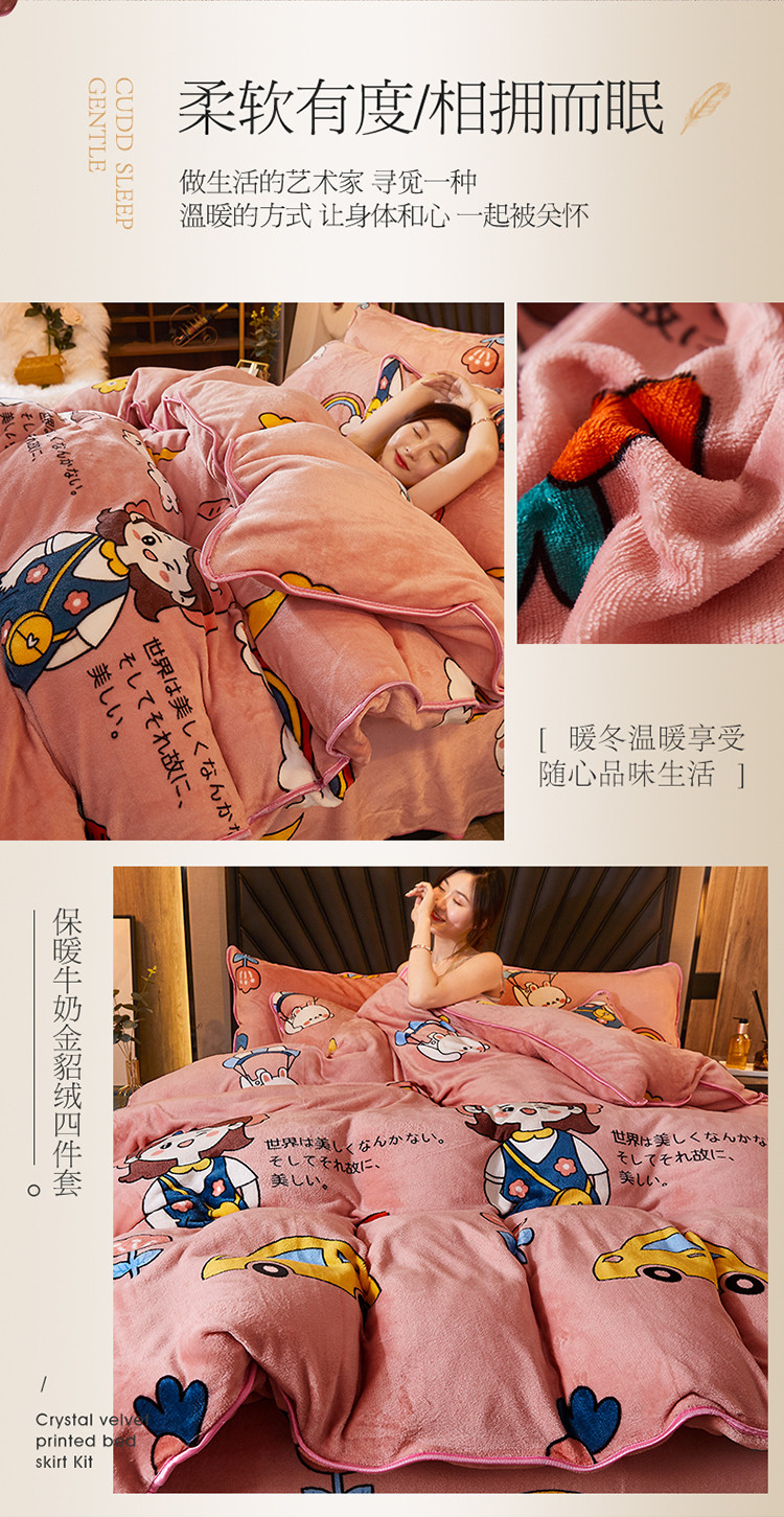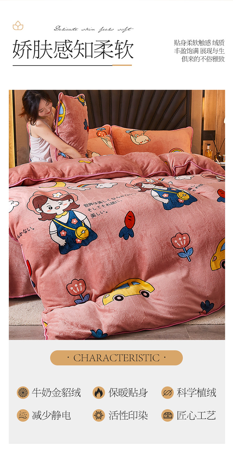 商品名称:迷仙巢 2020新款牛奶金貂绒四件套 青春