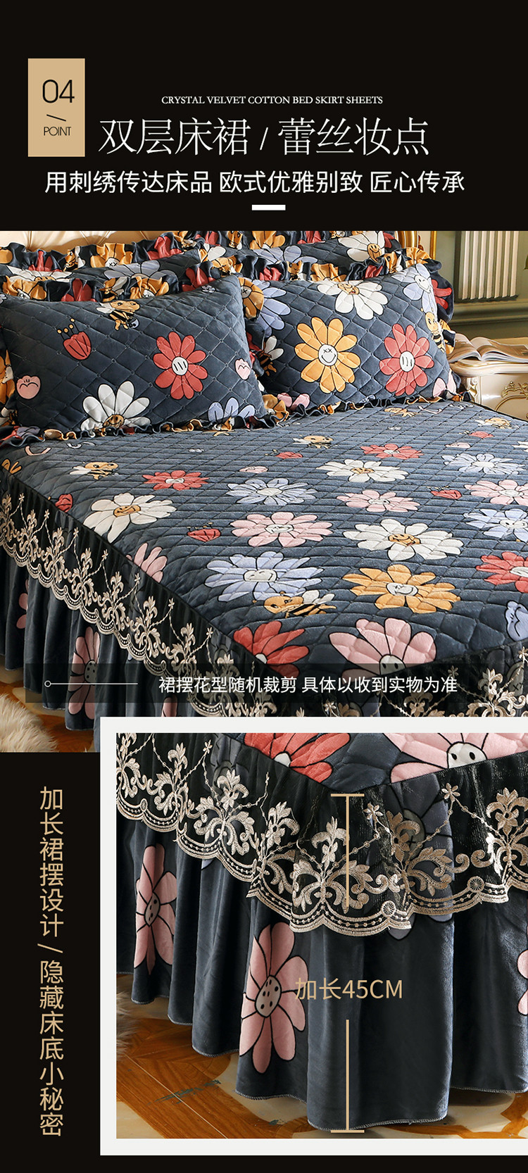 (总)宜凡家纺 2026新款全棉法式夹棉床裙款三件套,尘世浮华,春日微光,花黛织梦,曼妙花香,晴空,寻觅花季