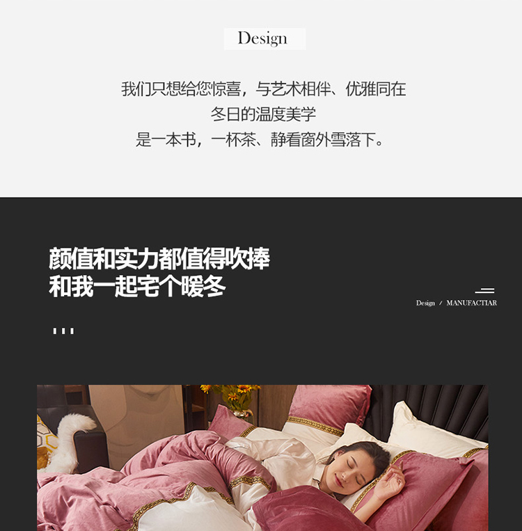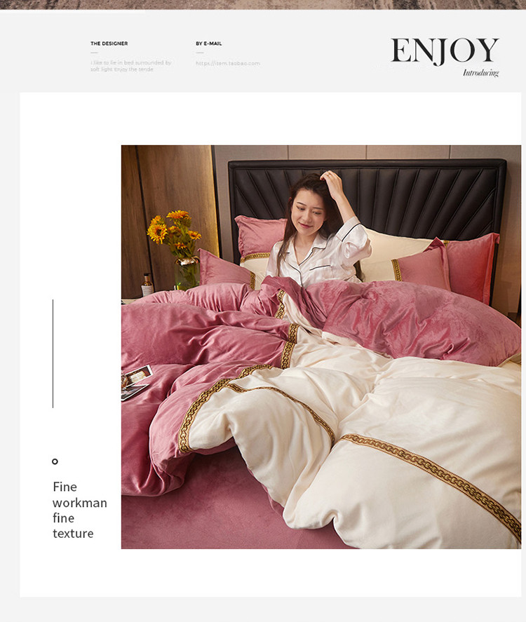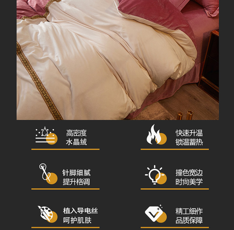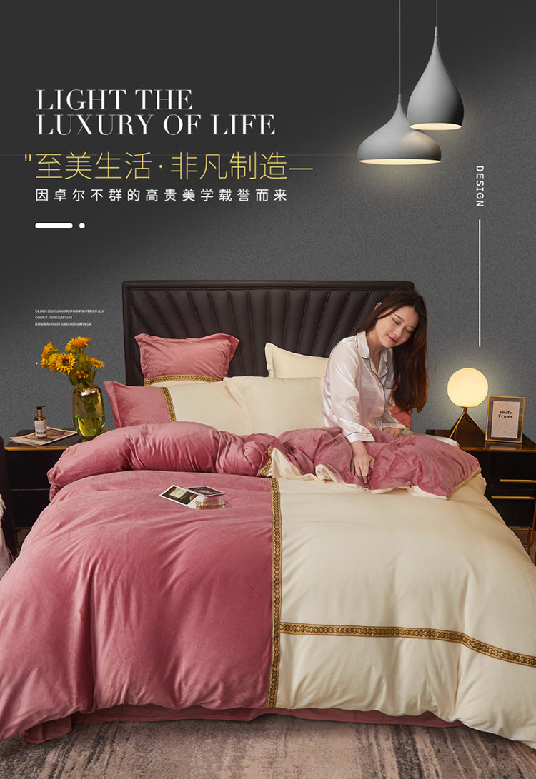 铠畅 2020新款织带款水晶绒四件套 唯爱-白裸