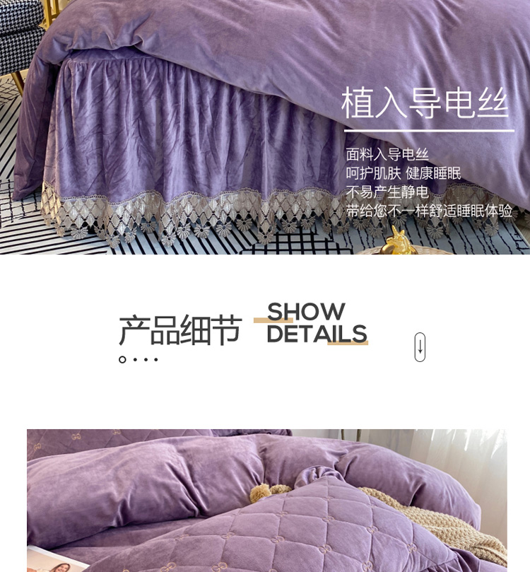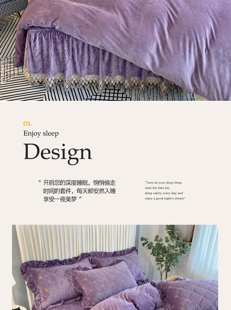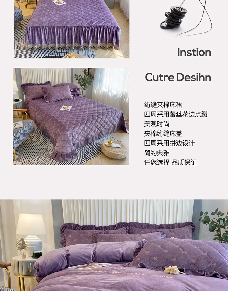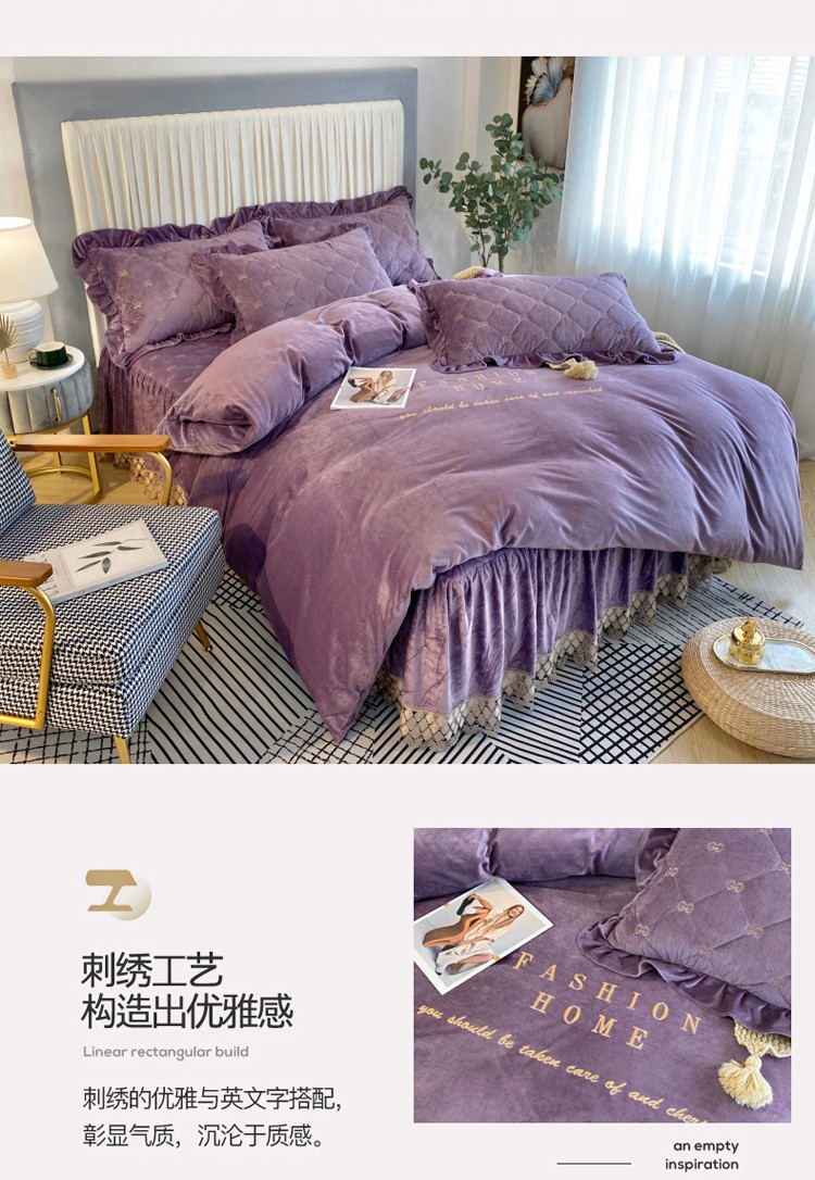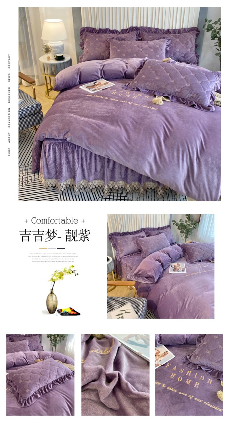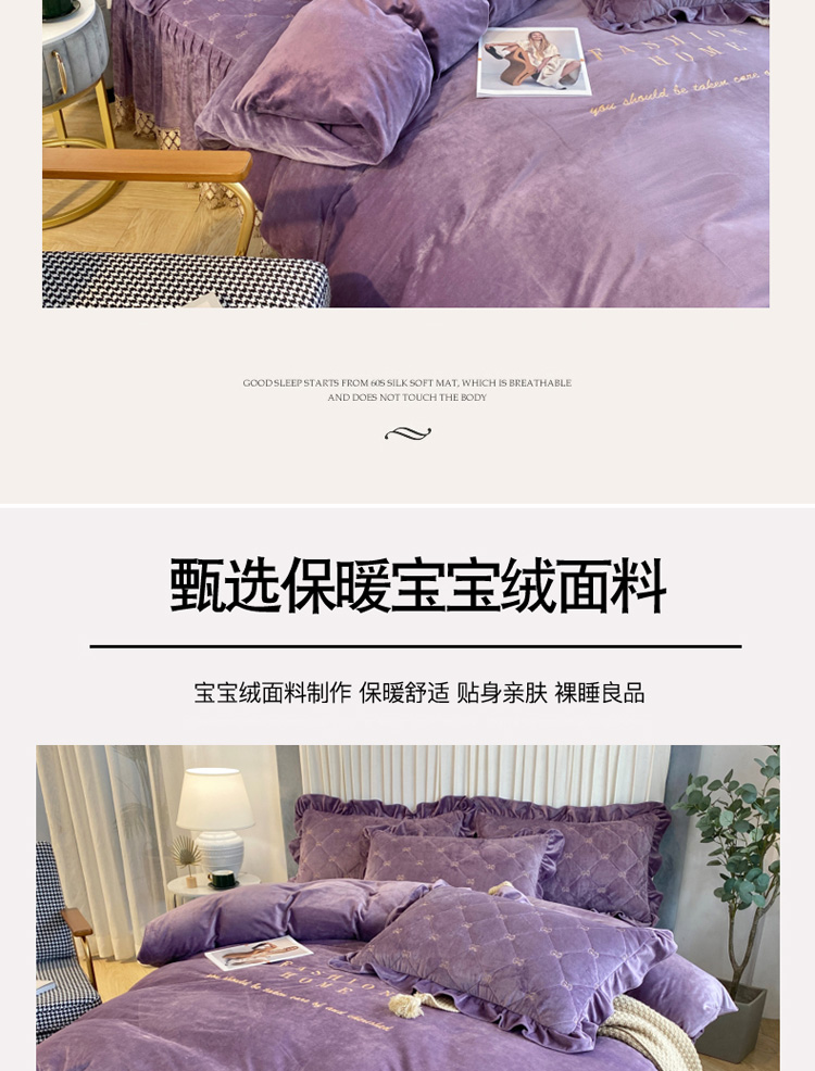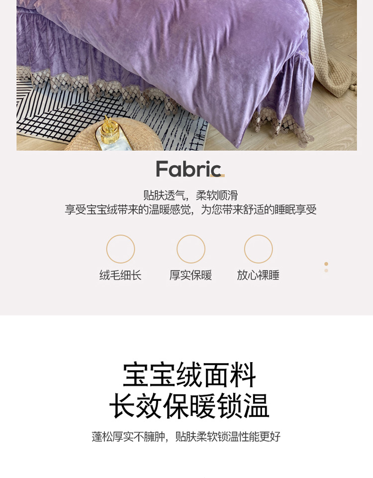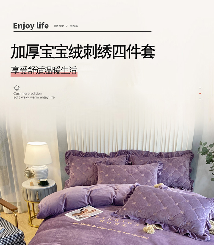 当前位置: 91家纺网 > 商品网购 > 床品套件 > 四件套 > 宝宝绒四件套 > 星尚家纺 2020新款宝宝绒夹棉床裙床盖四件套吉吉梦- 靓紫