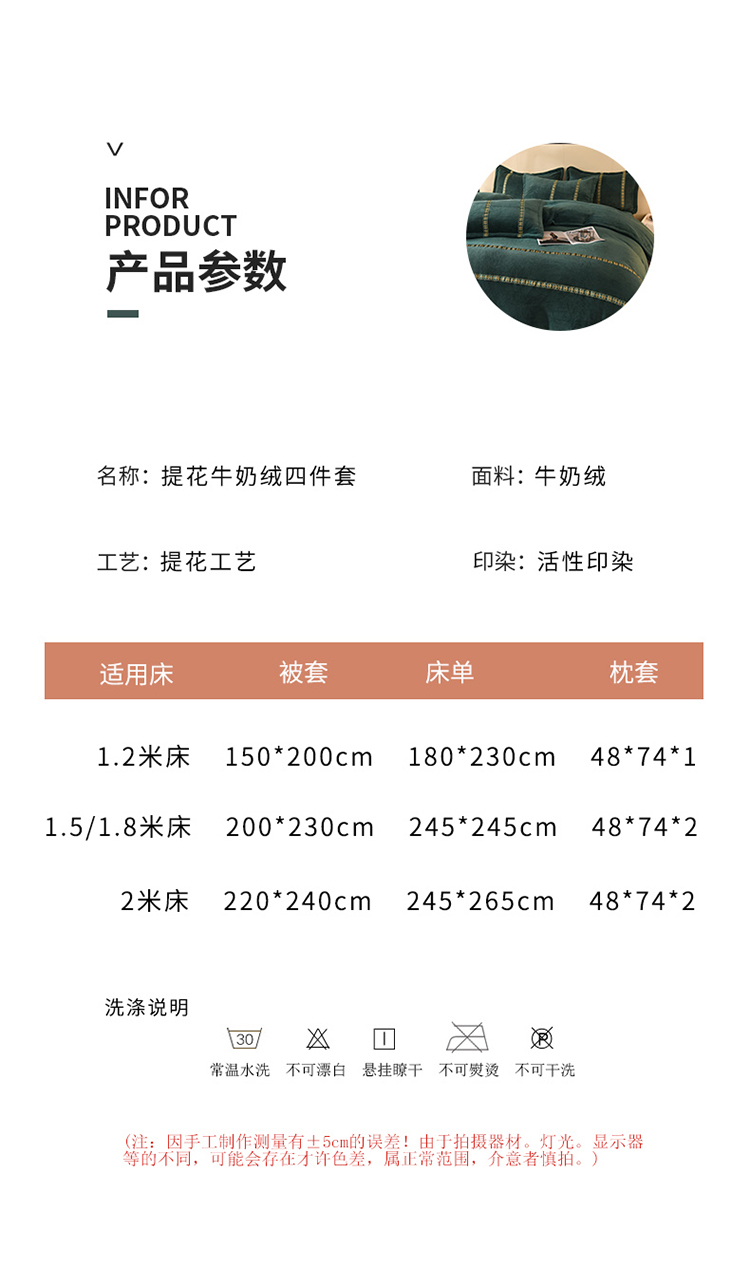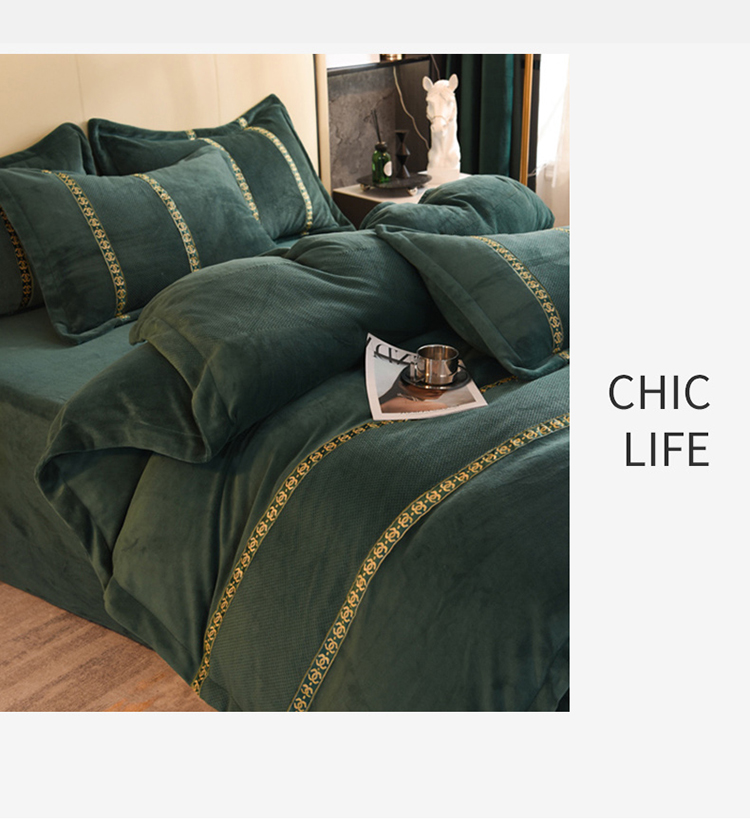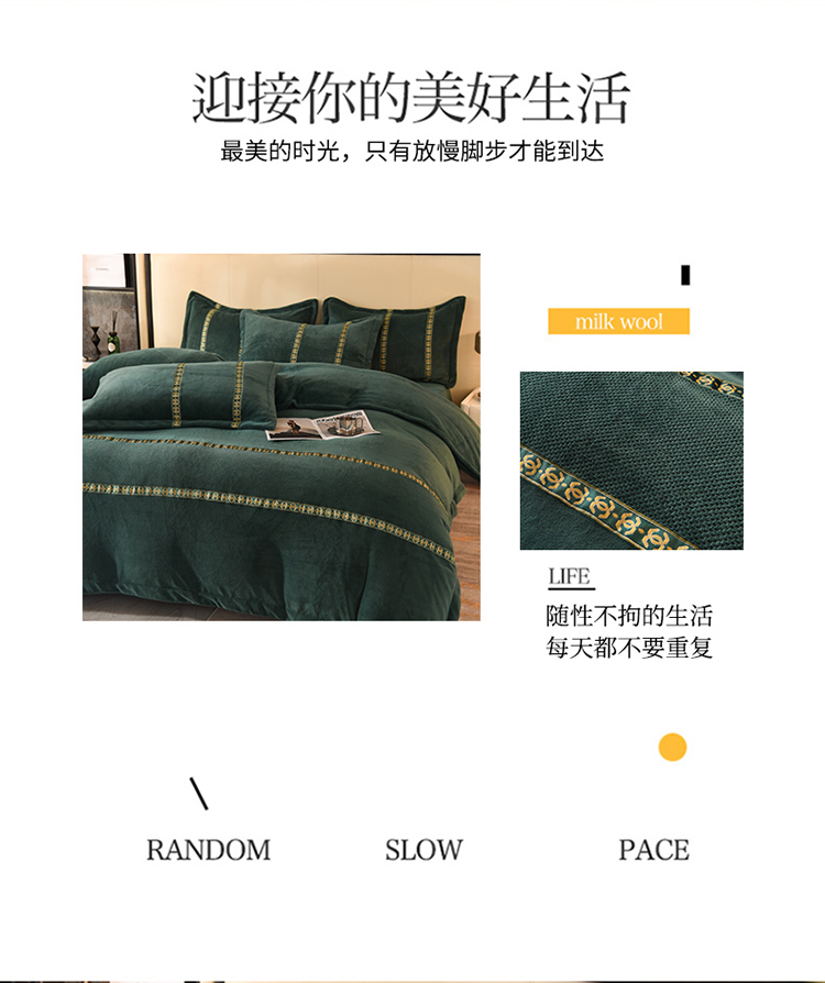 商品名称:七七 2025新款保暖加厚提花牛奶绒四件套 寐语-石墨绿