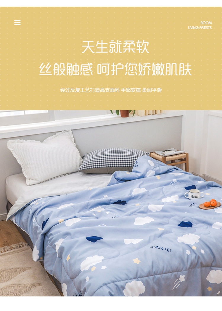 商品名称:寐居 2021新款水洗棉小花边单夏被 晴空万里