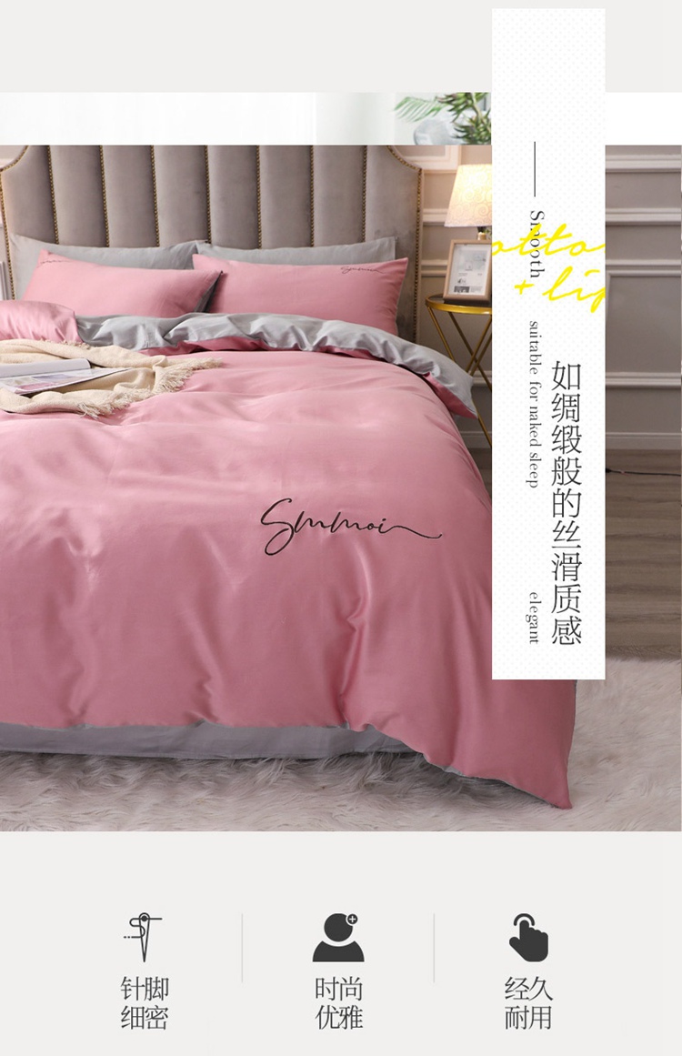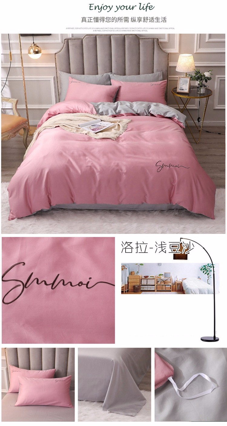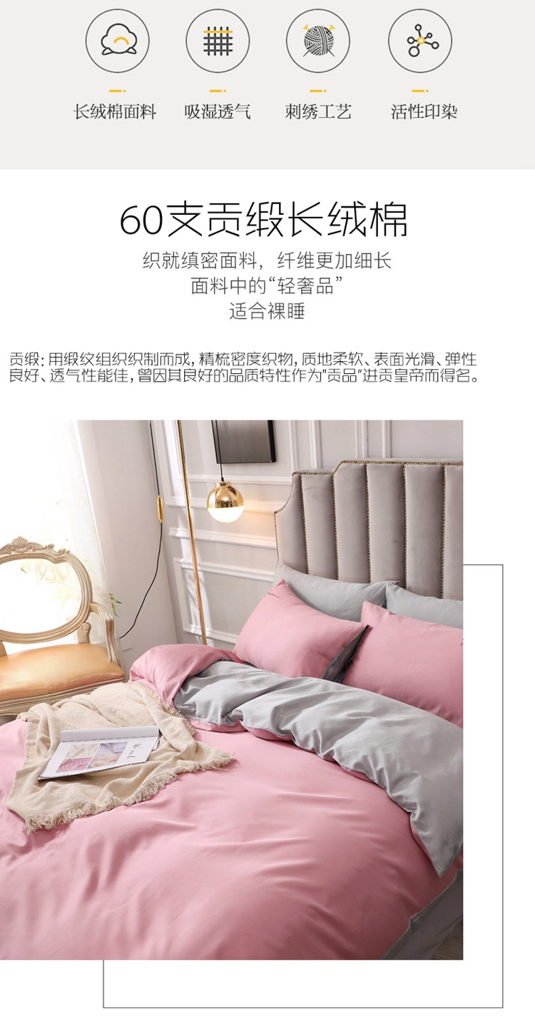 商品名称:2021新款纯色拼色纯棉全棉60S贡缎长绒棉绣花四件套 豆沙