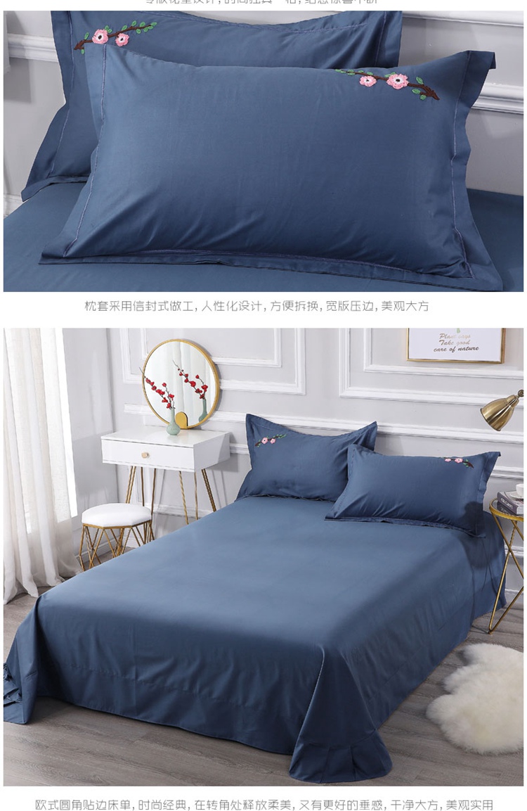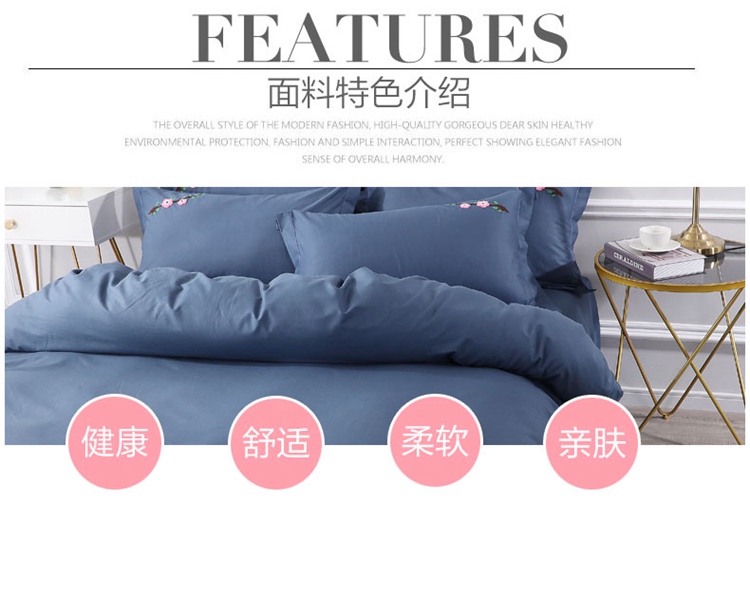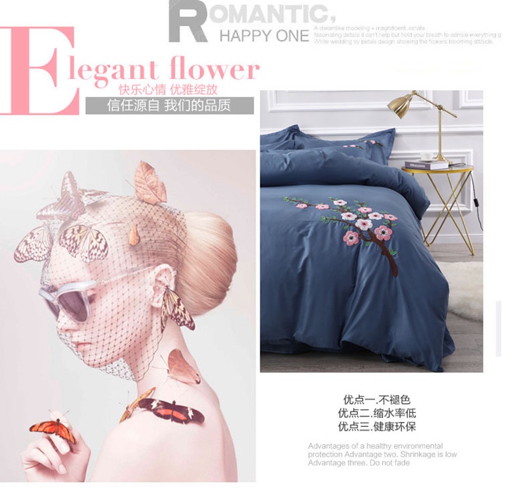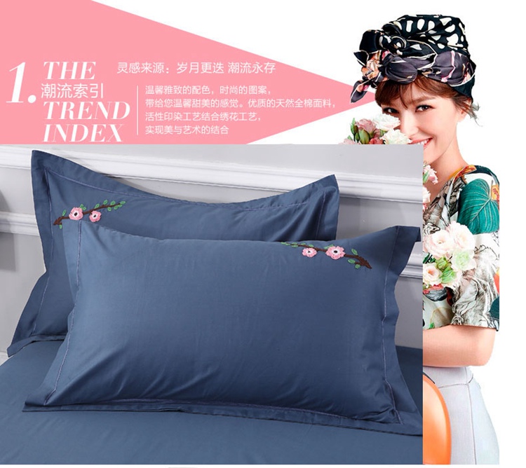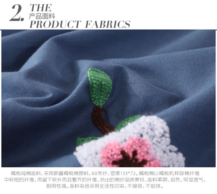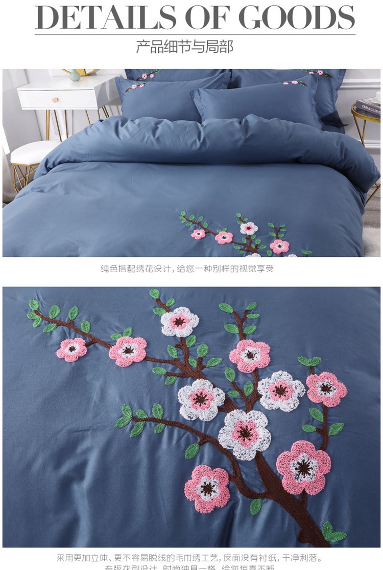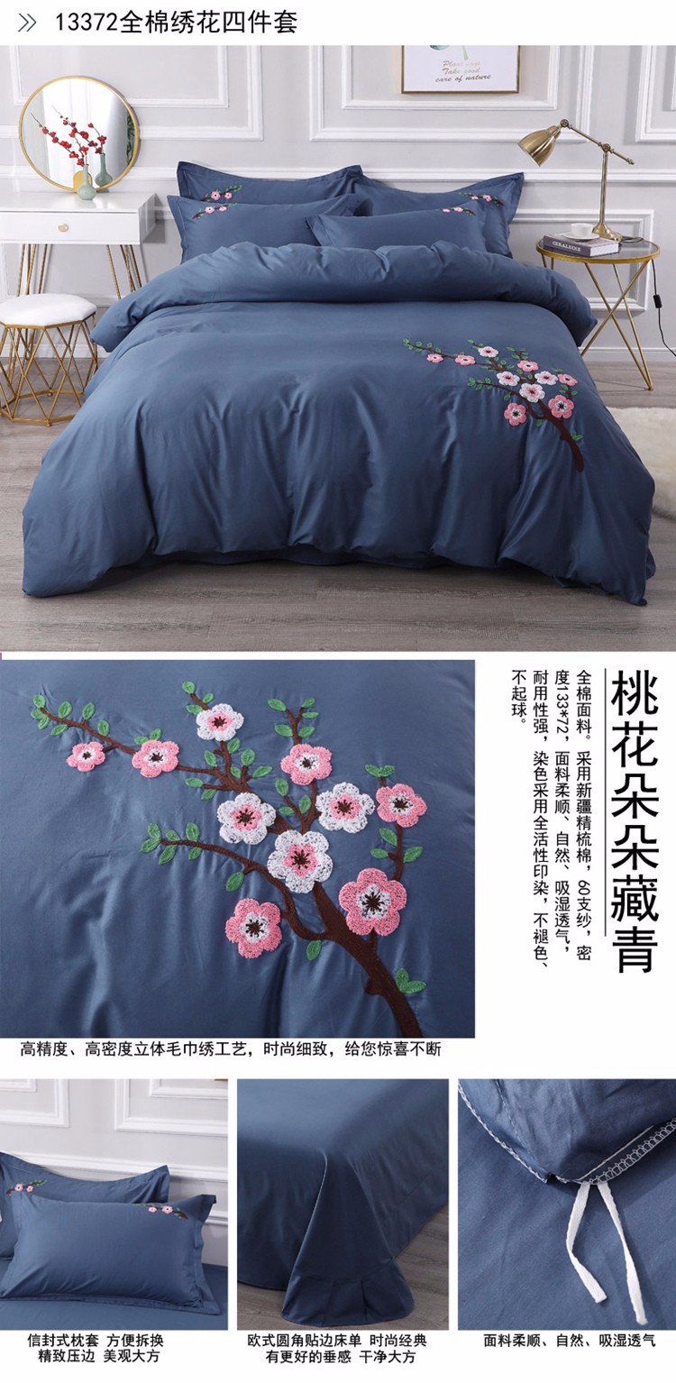 商品名称:2021新款全棉13372毛巾绣纯棉刺绣花四件套桃花朵朵藏青