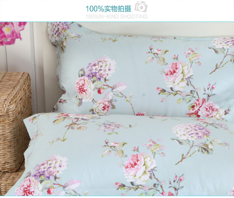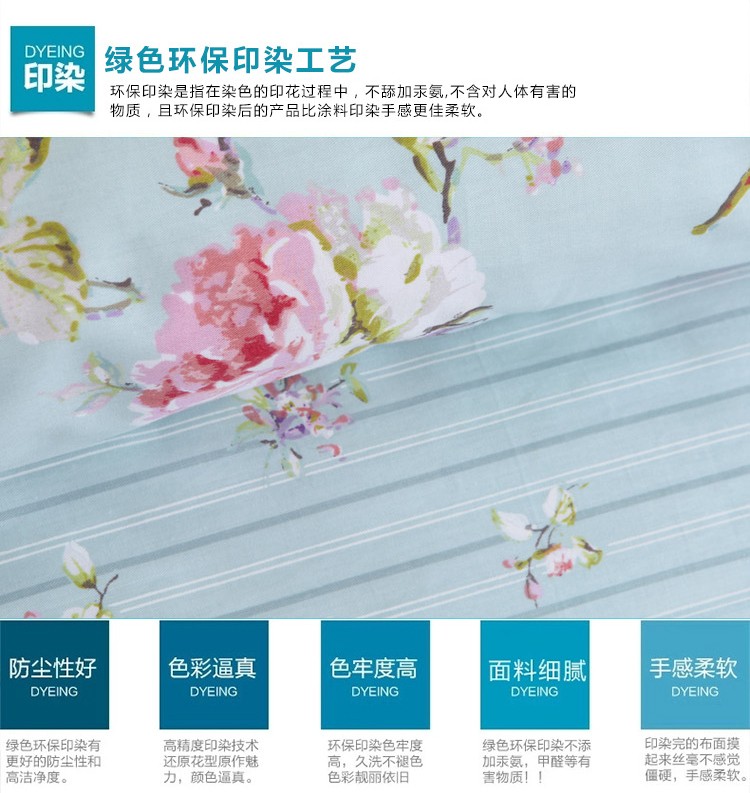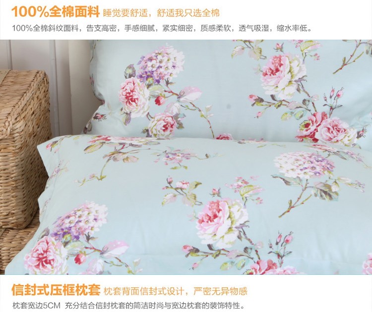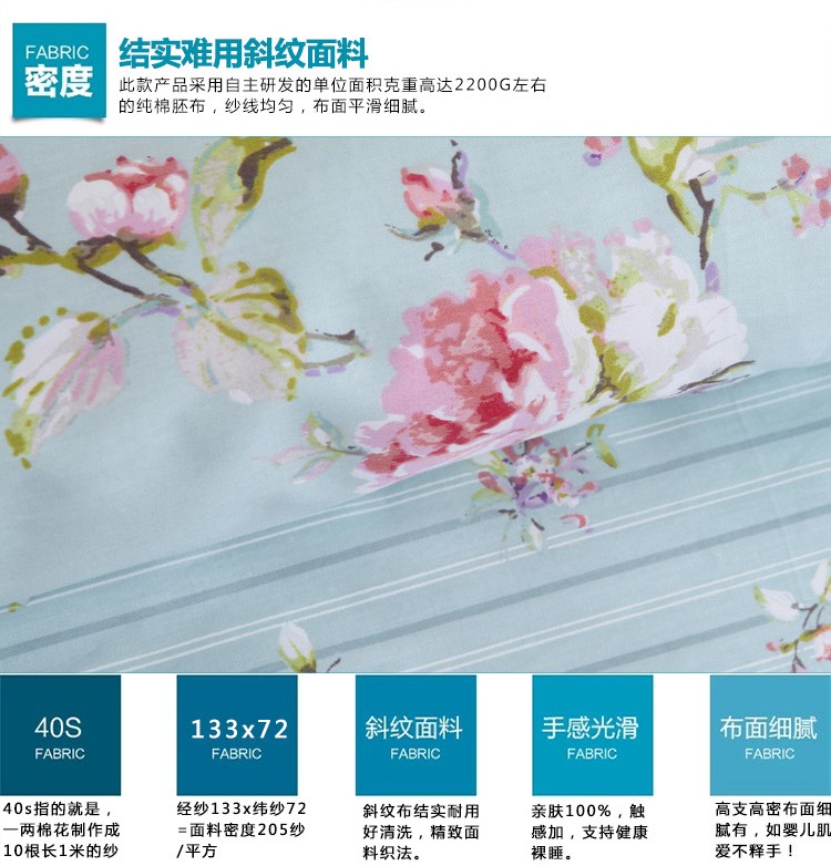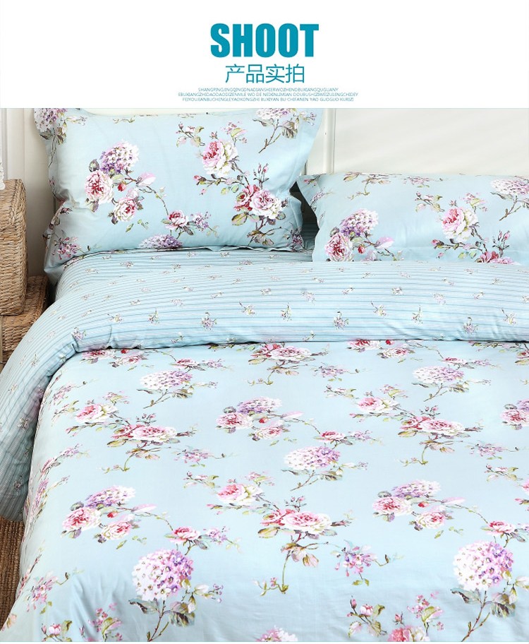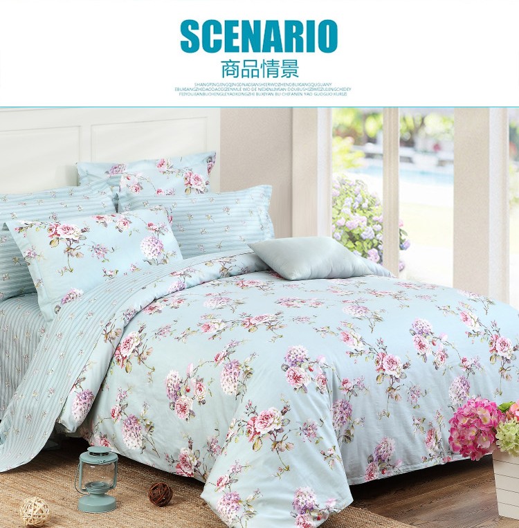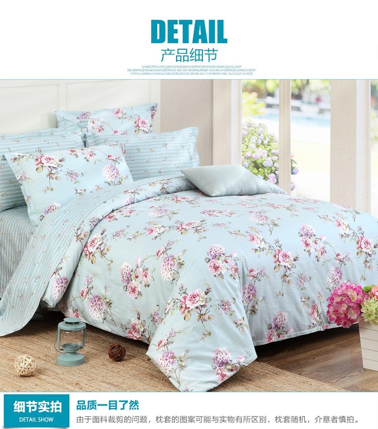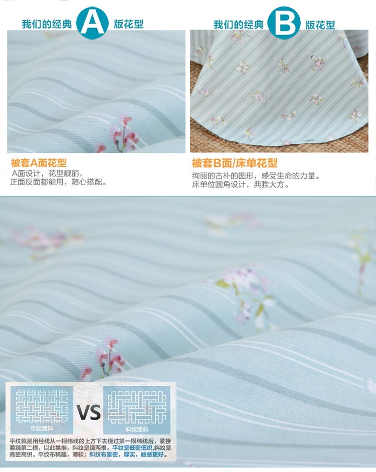 商品名称:星期三 2021新款花卉系列全棉13372四件套(加老板微信有会员价) 初妆花蕊蓝