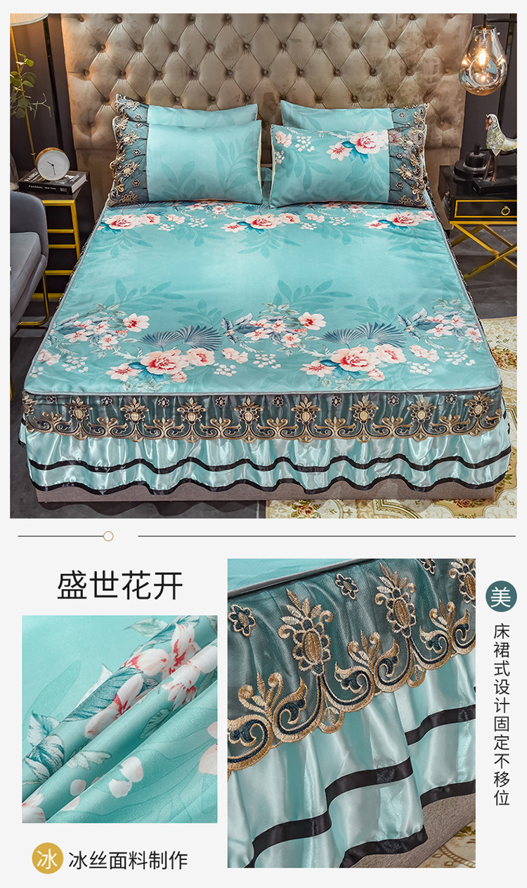 ds生活馆 2021新款欧式床裙款冰丝席凉席 真爱永恒