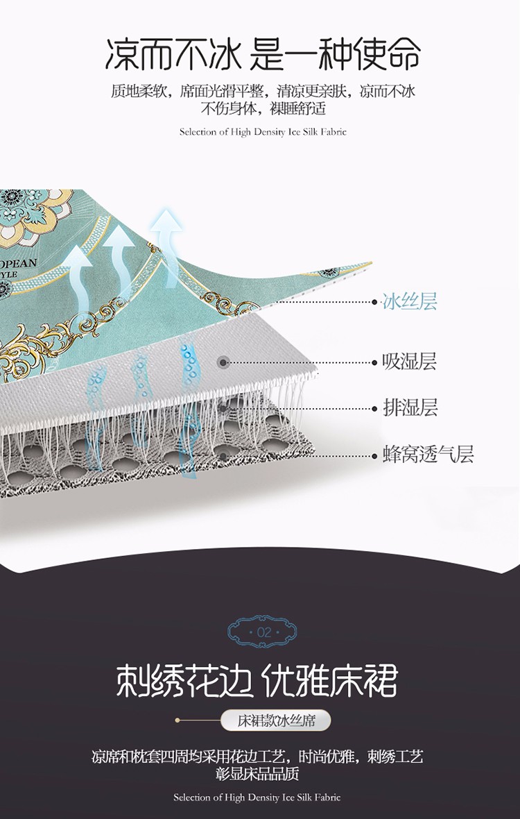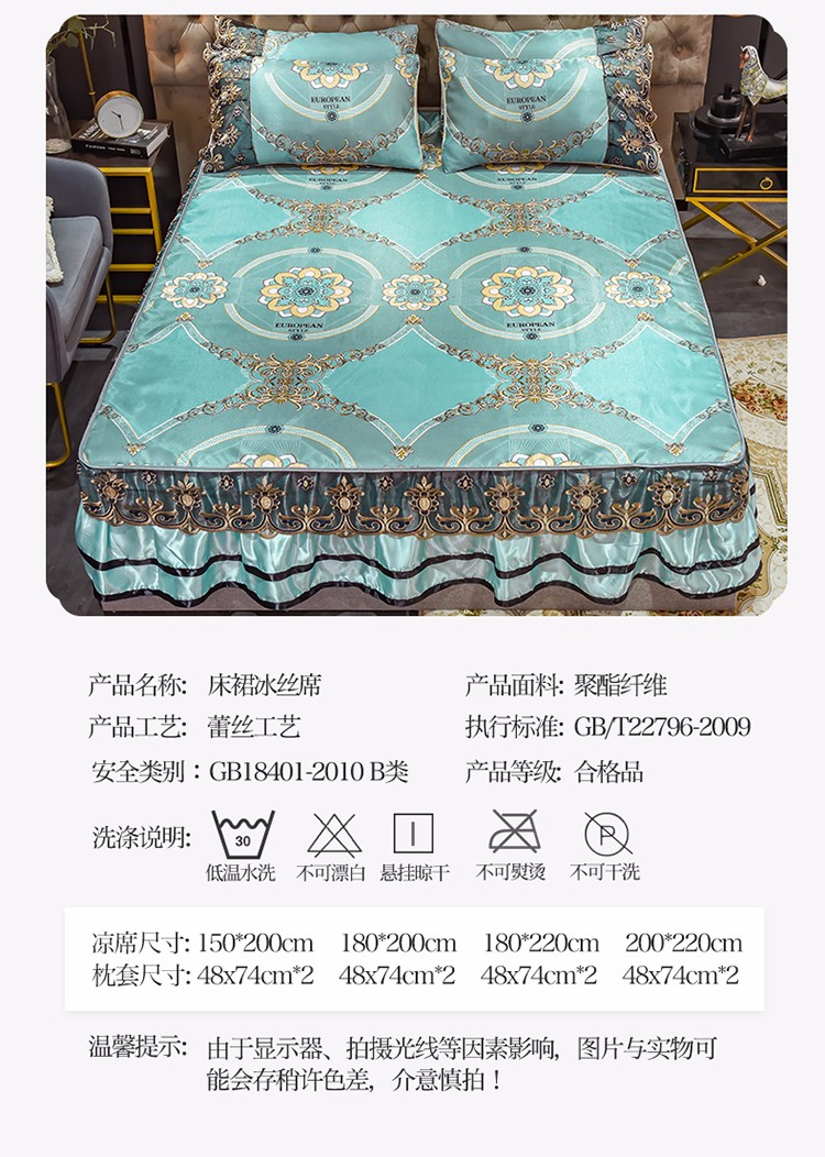 商品名称:ds生活馆 2021新款欧式床裙款冰丝席凉席 华尔兹