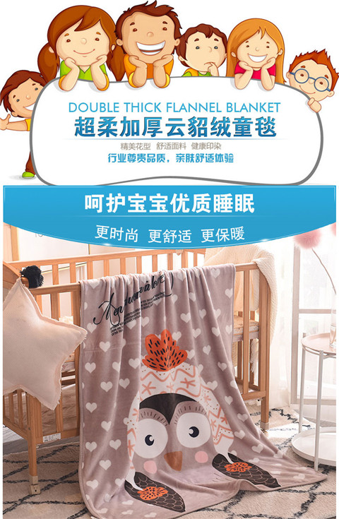 (总)爱她美 2021新款童毯超柔加厚云貂绒儿童毯,爱心猫头鹰,大黄鸭,格子熊,狐狸,火烈鸟,领结猫,三角熊,鲨鱼,围巾小熊,小白兔,小浣熊,小鹿,羊驼,云朵熊,冰淇淋鸟,彩虹兔,红狐狸,狸猫,树懒,小白象,叮当猫,可爱小兔