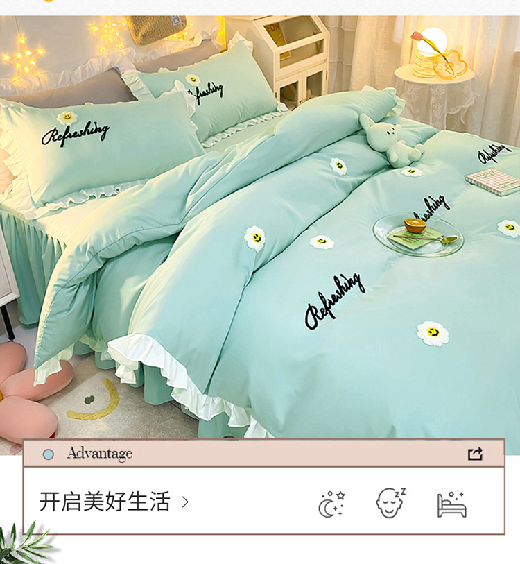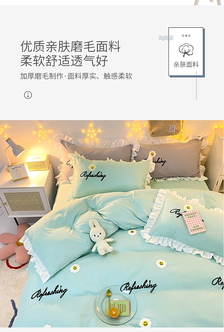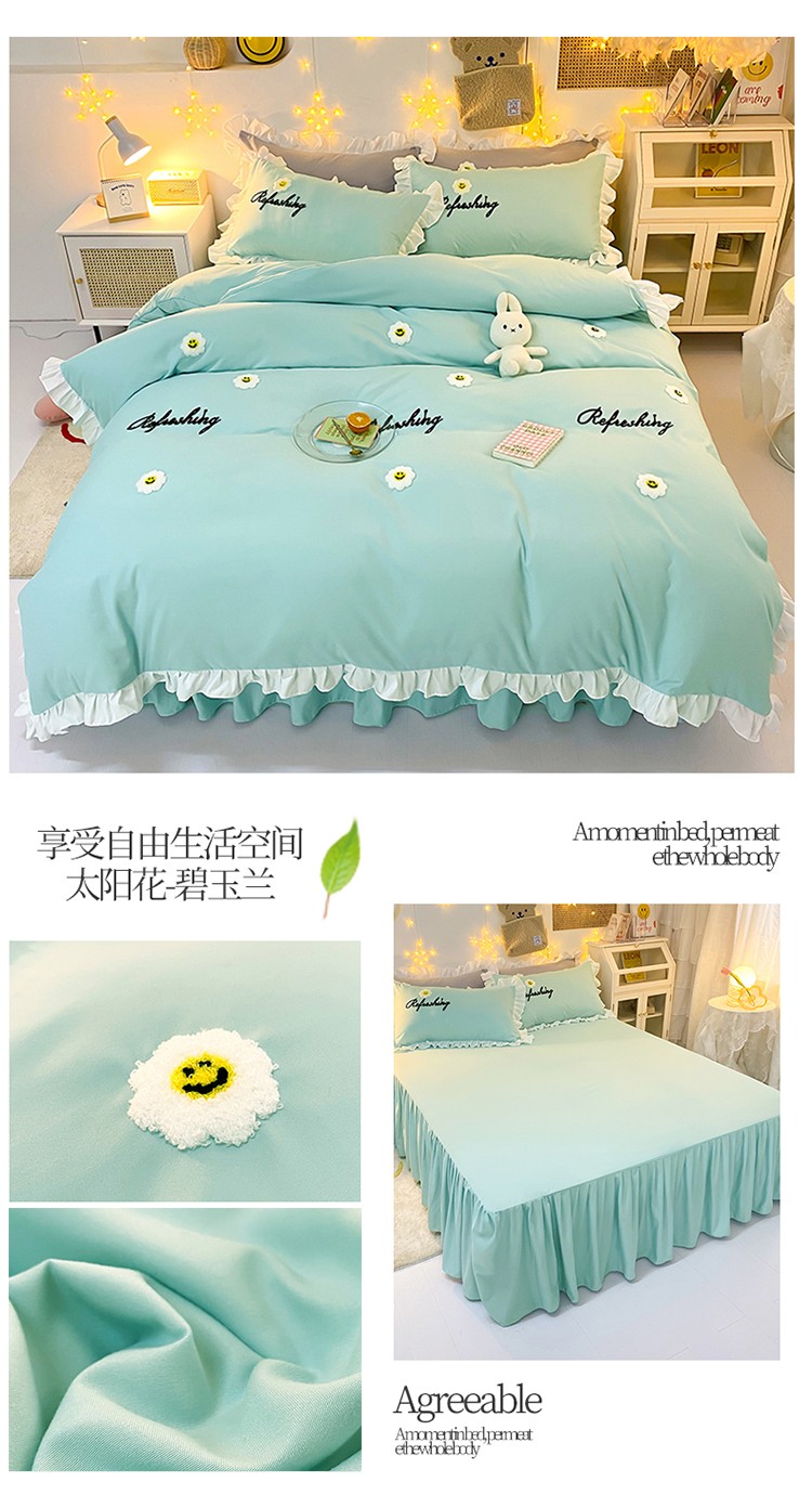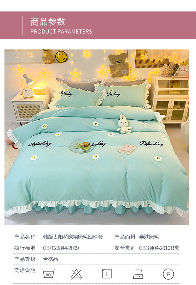 当前位置: 91家纺网 > 商品网购 > 床品套件 > 四件套 > 普通磨毛四件套 > 包小包 2024新款韩版太阳花亲肤磨毛四件套 太阳花-碧玉兰