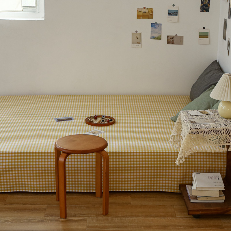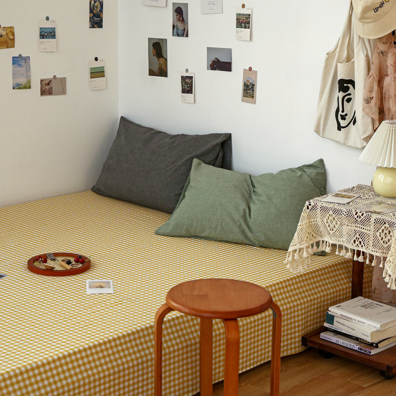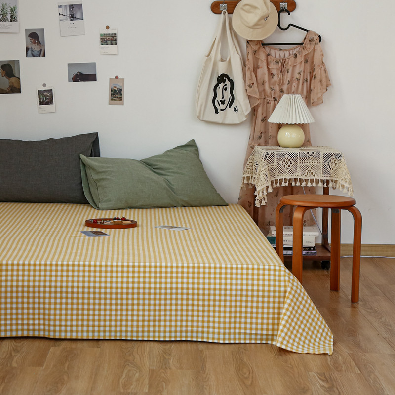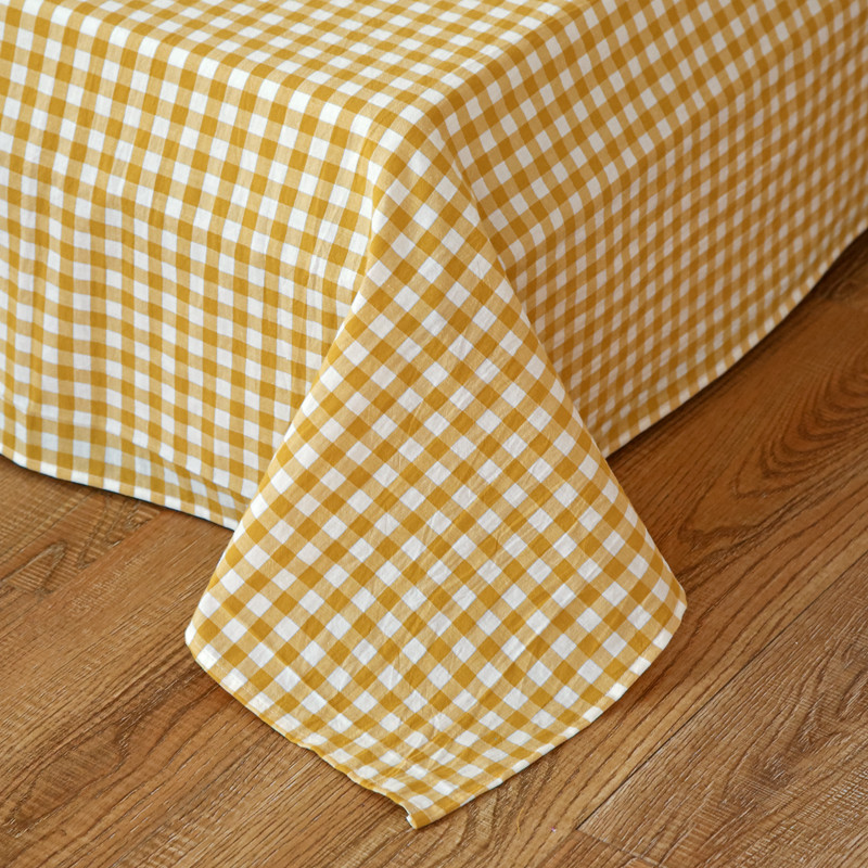 安莱生活 2021新款色织全棉水洗棉单床单 黄小格