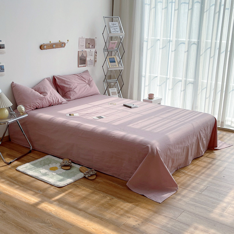安莱生活 2021新款全棉水洗棉单床单 藕粉