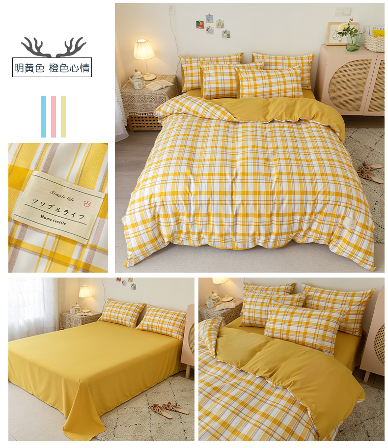 简冠家纺 2022新款水洗棉四件套 明黄色橙色心情