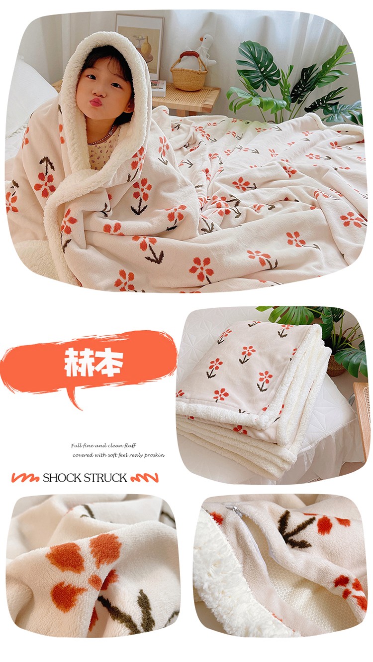 (总)萝莉 2021新款立体羊毛绒双层毯,草霉,黑色雏菊,咖色雏菊,樱桃