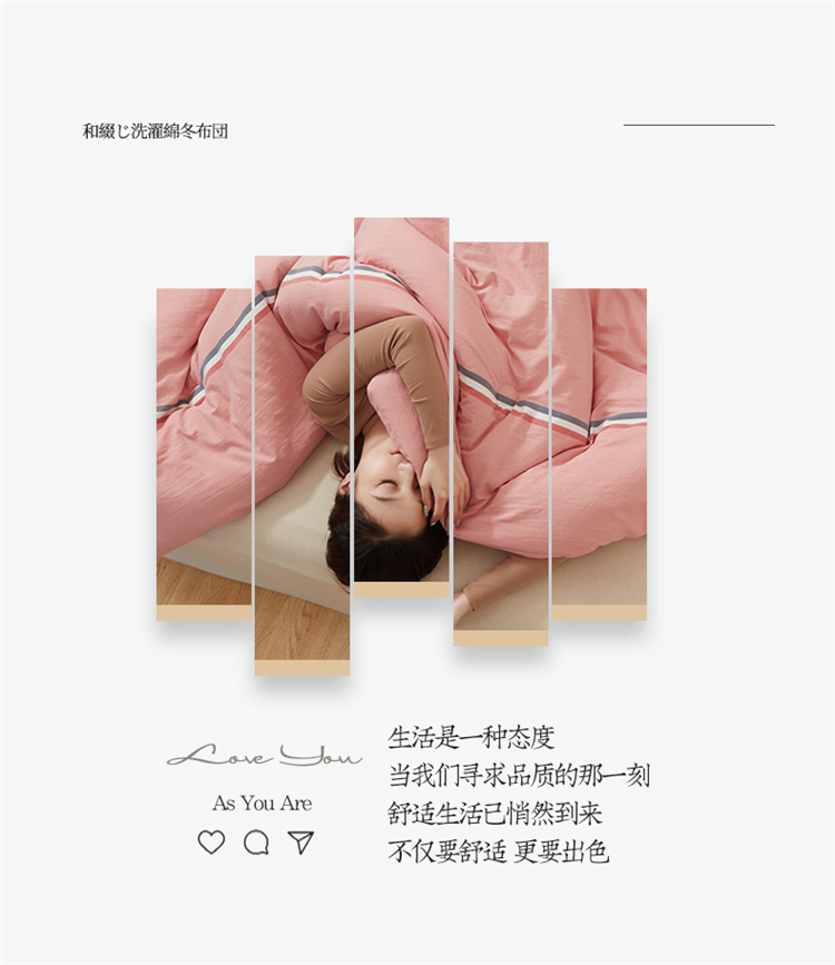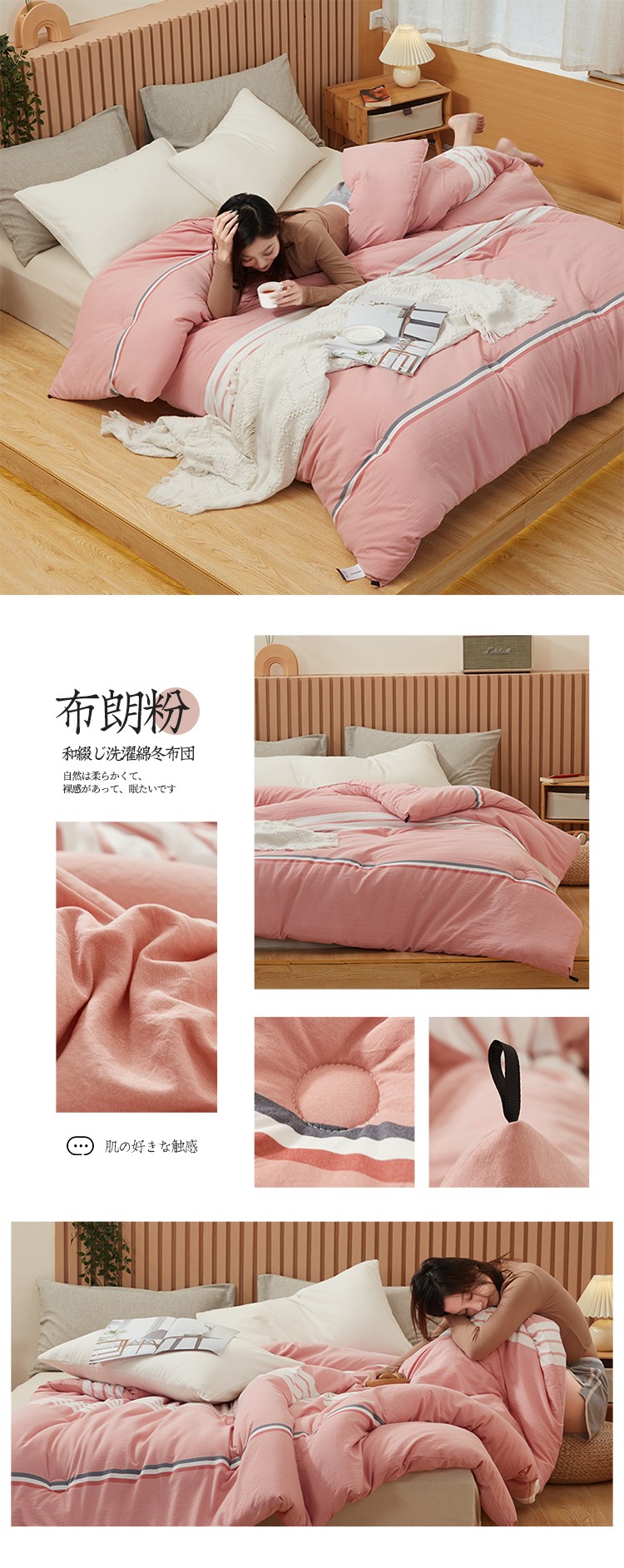 • 91家纺网 家纺一手货源 找家纺 莱宁被业 2021新款日式色织水洗棉冬被 布朗粉