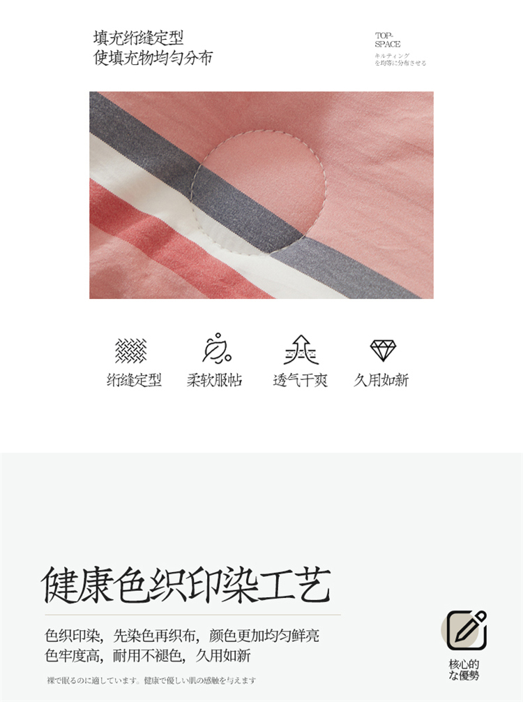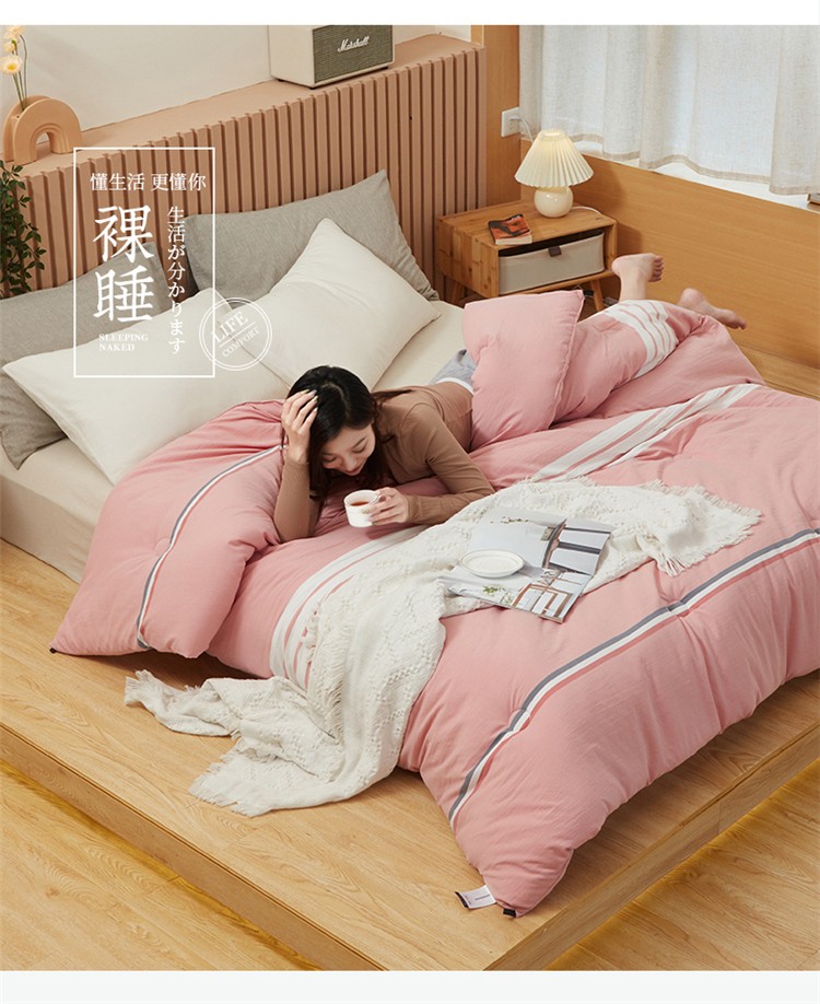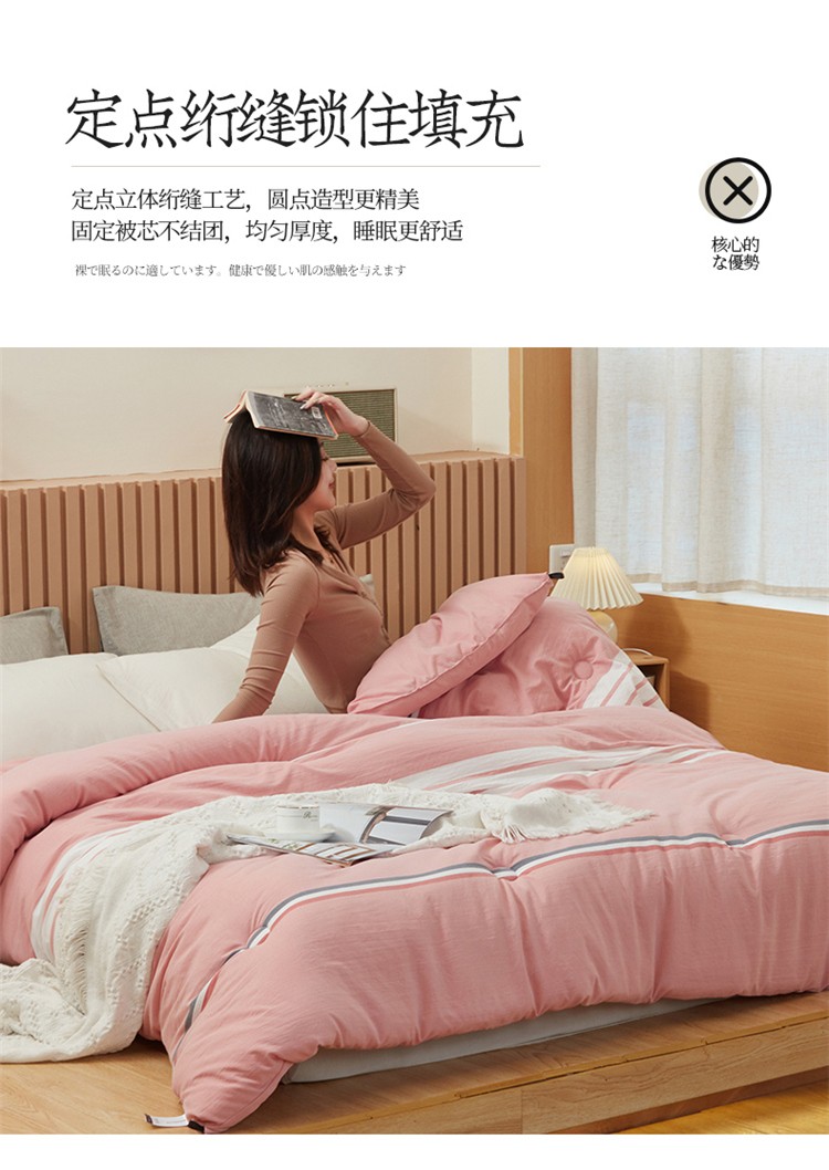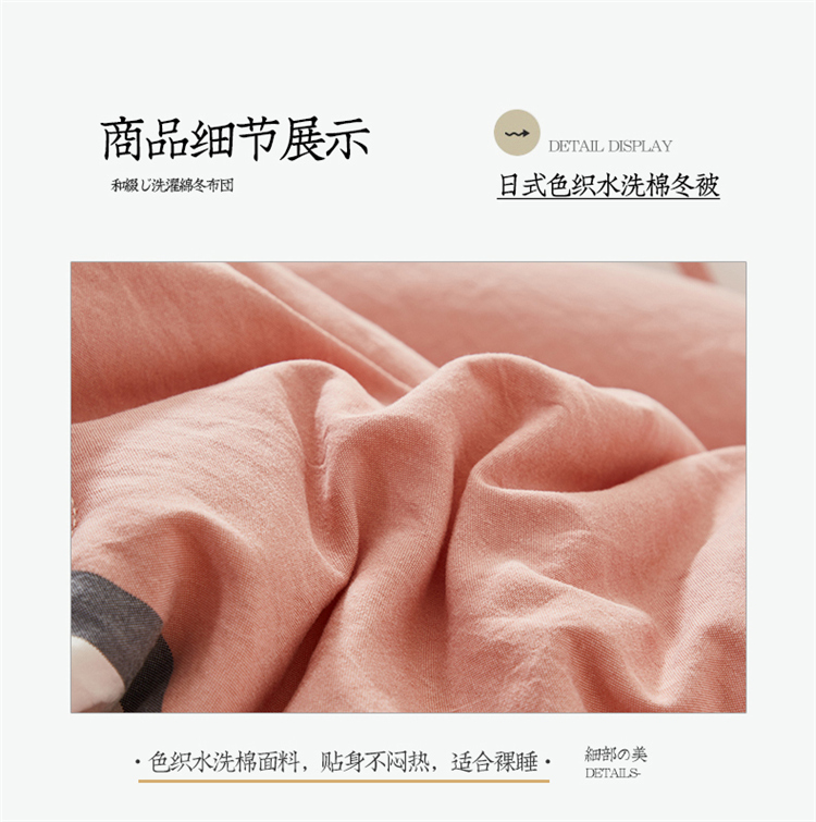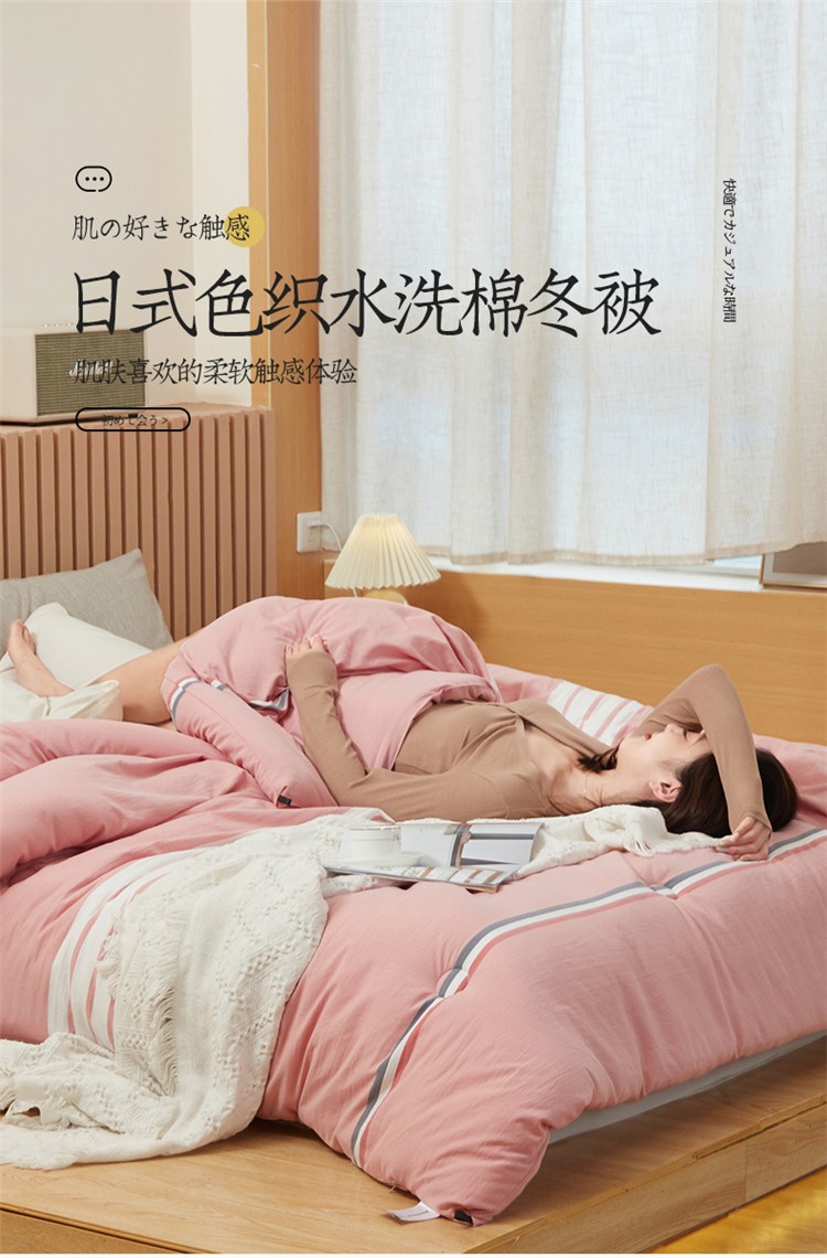 莱宁被业 2021新款日式色织水洗棉冬被 布朗粉