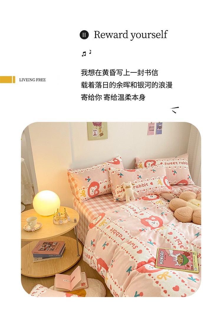 雅居纺 2022新款印花牛奶绒四件套 蝴蝶结小兔