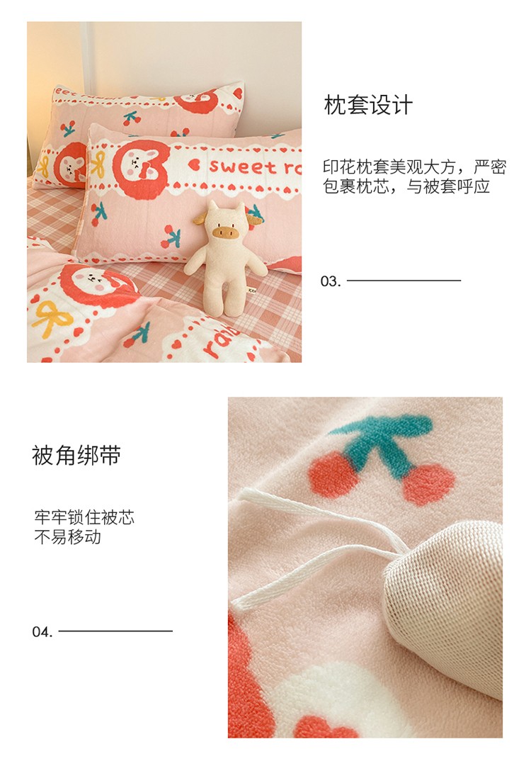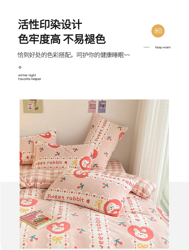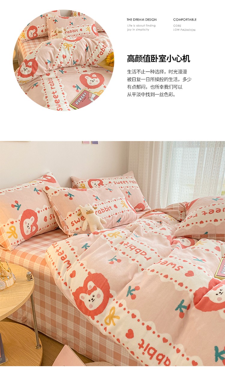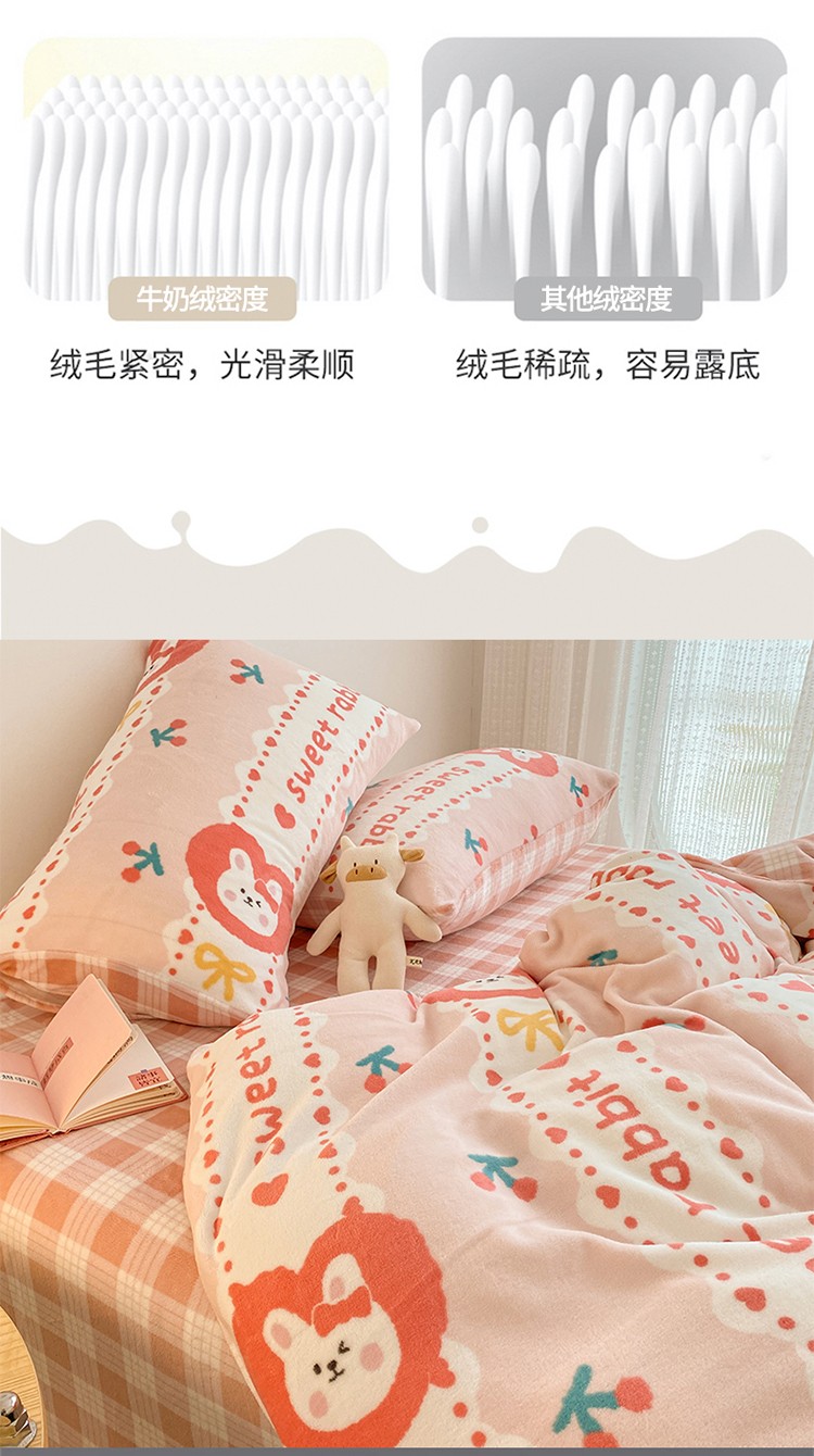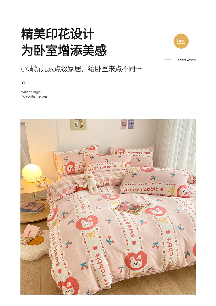 商品名称:雅居纺 2022新款印花牛奶绒四件套 蝴蝶结小兔