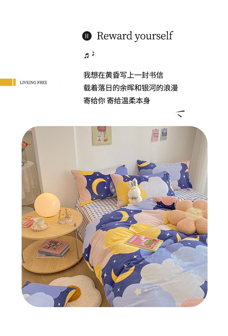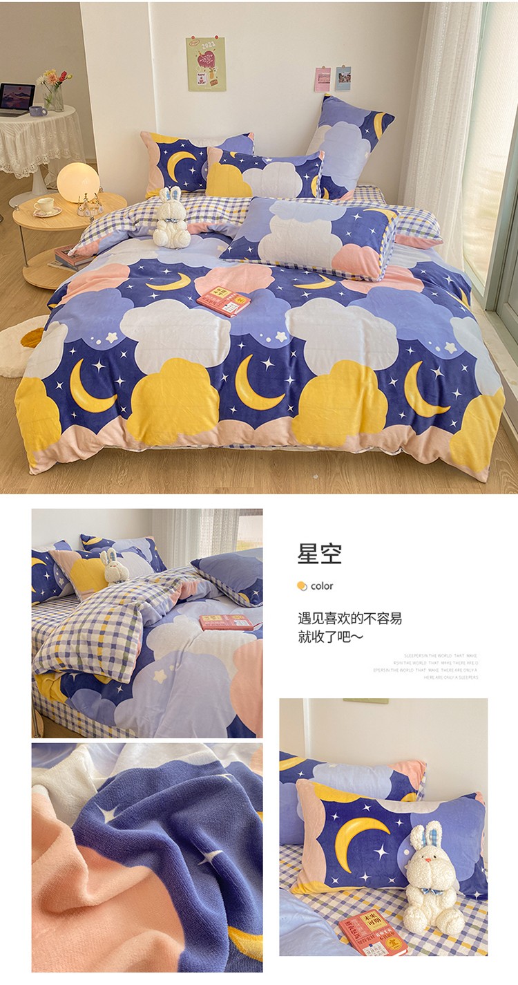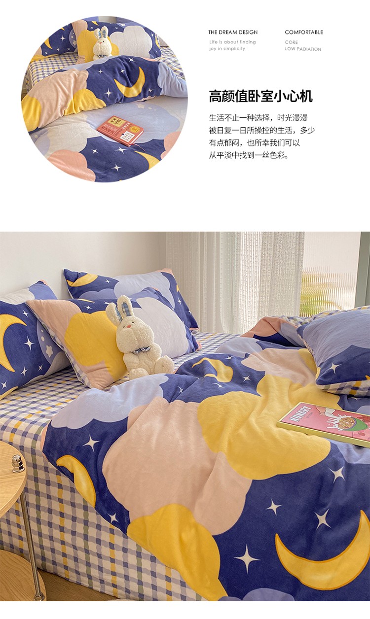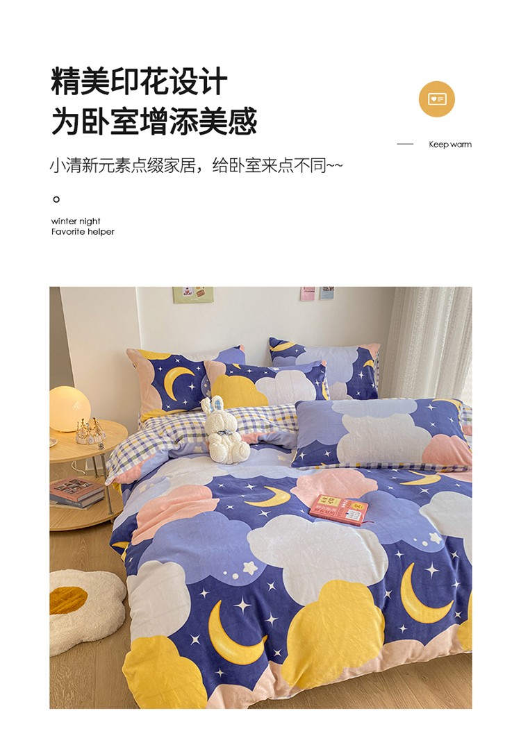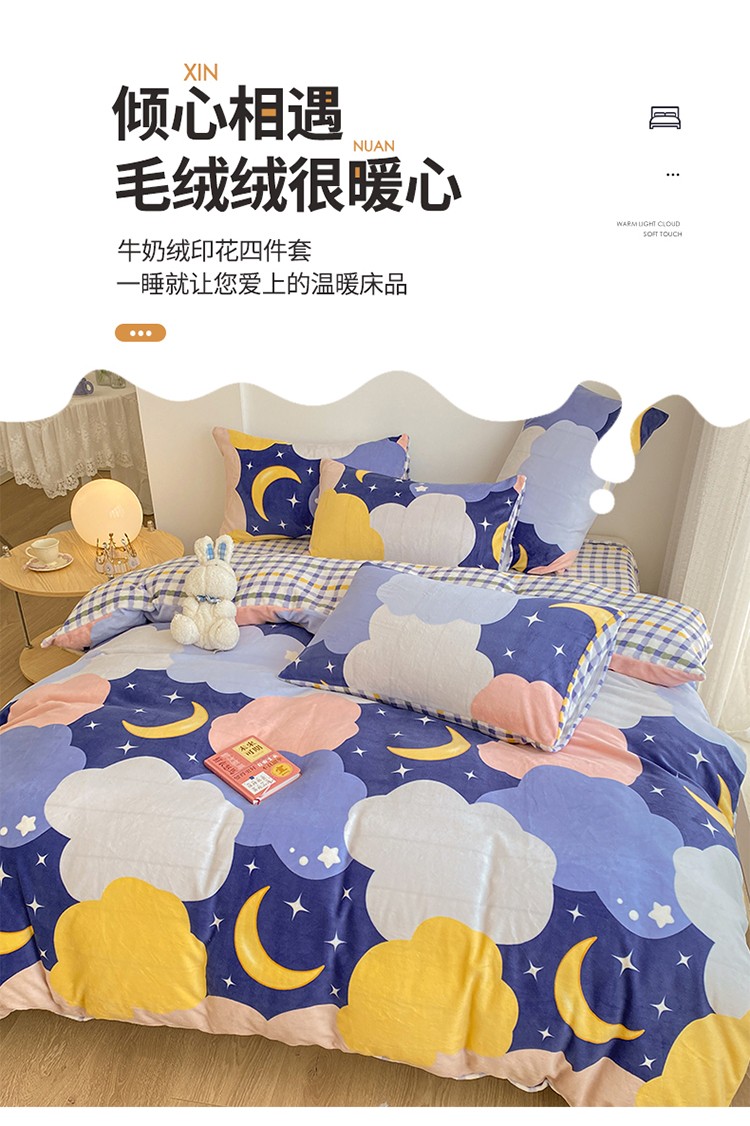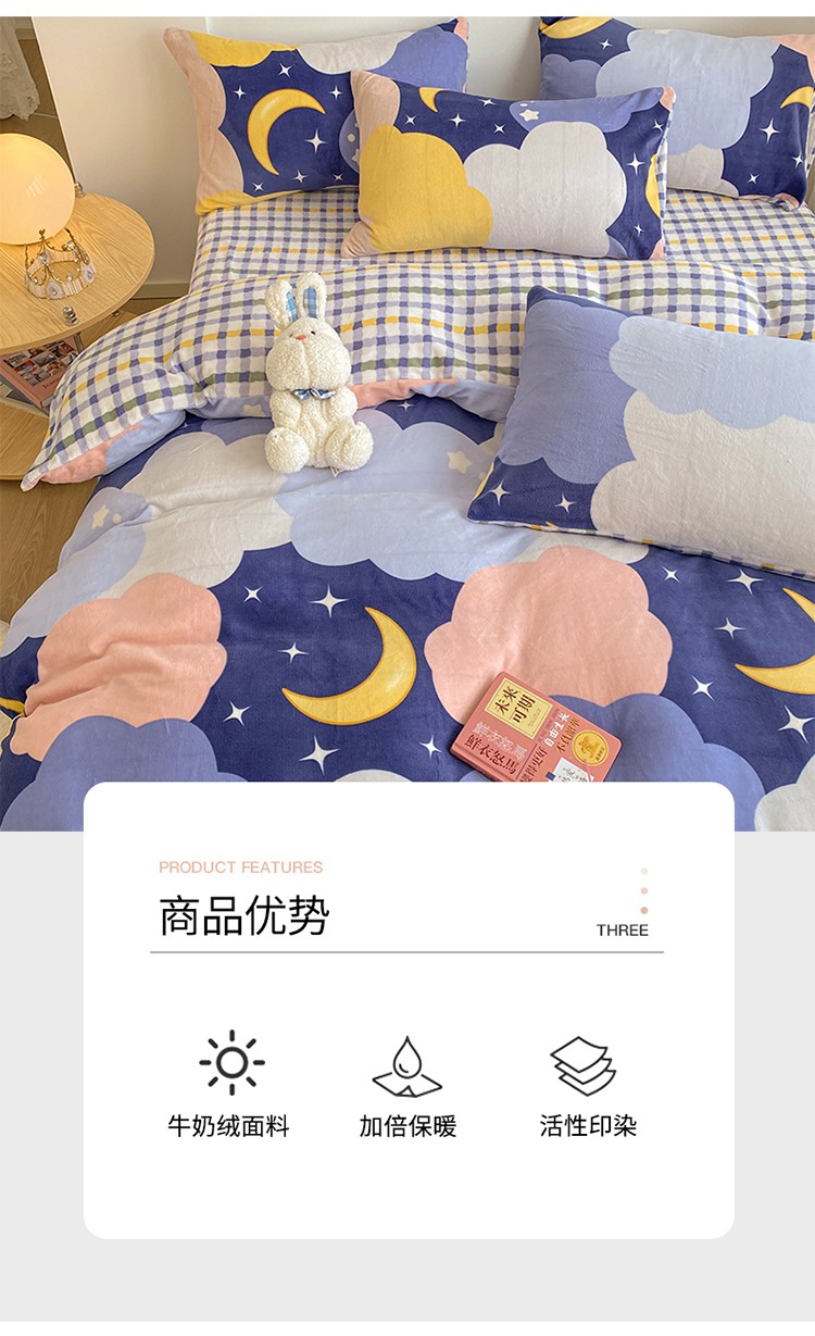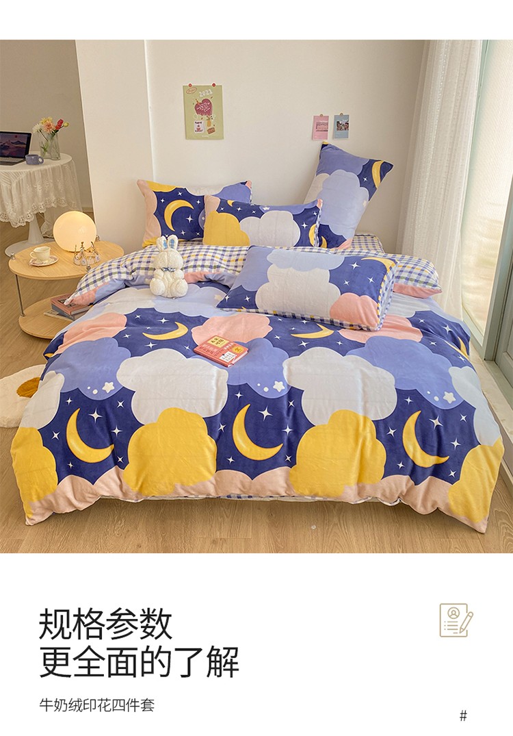商品名称:雅居纺 2022新款印花牛奶绒四件套 星空