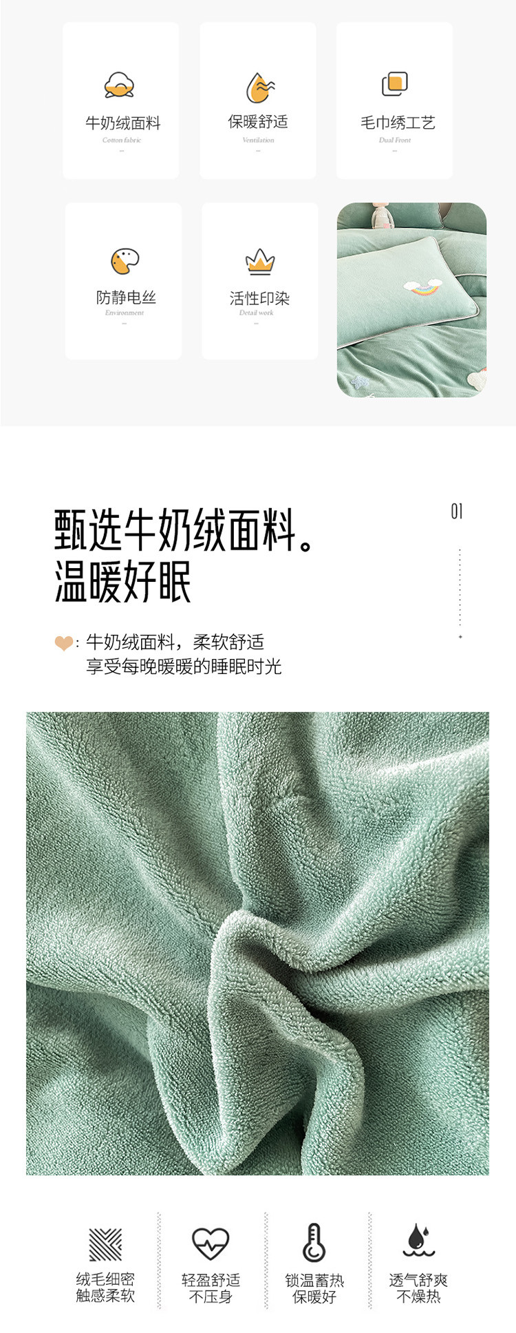 (总)绒兔兔 2023新款雕花烂花牛奶绒刺绣四件套 克洛伊系列,克洛伊-碧绿,克洛伊-粉色,克洛伊-果绿,克洛伊-灰色,克洛伊-卡其,克洛伊-奶白