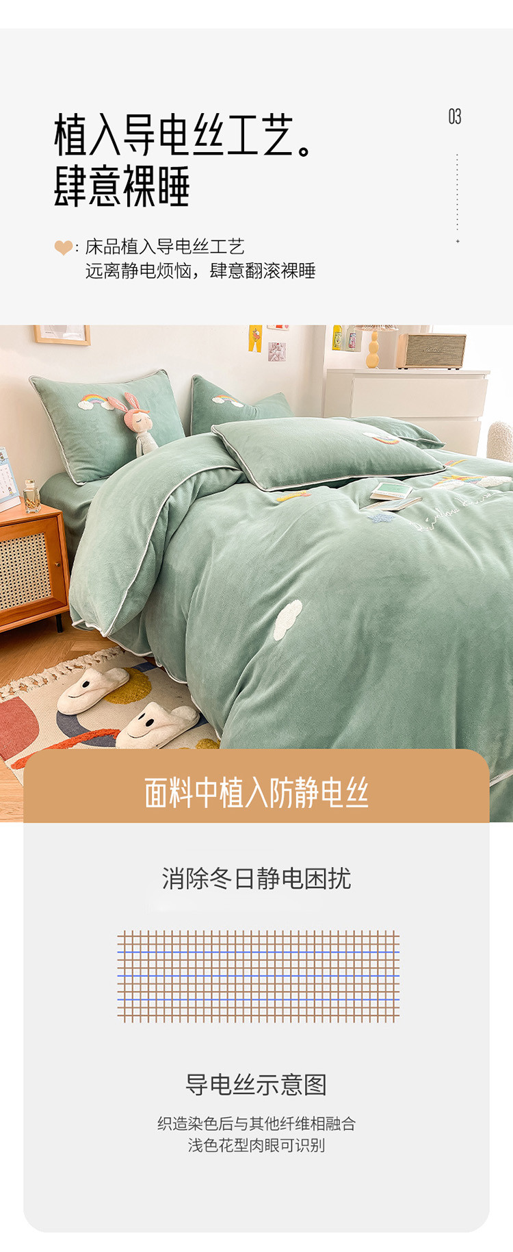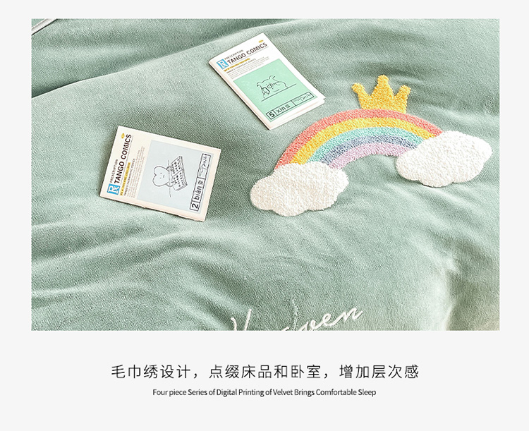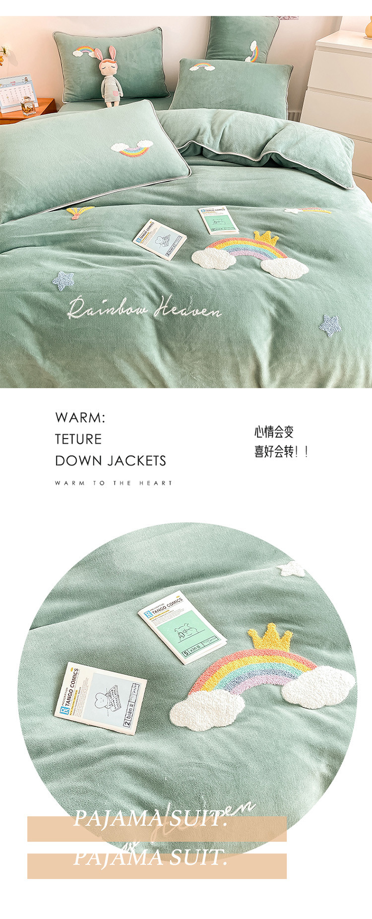 商品名称:绒兔兔 2021秋冬牛奶绒毛巾绣韩版床裙床单四件套 七彩云-青绿