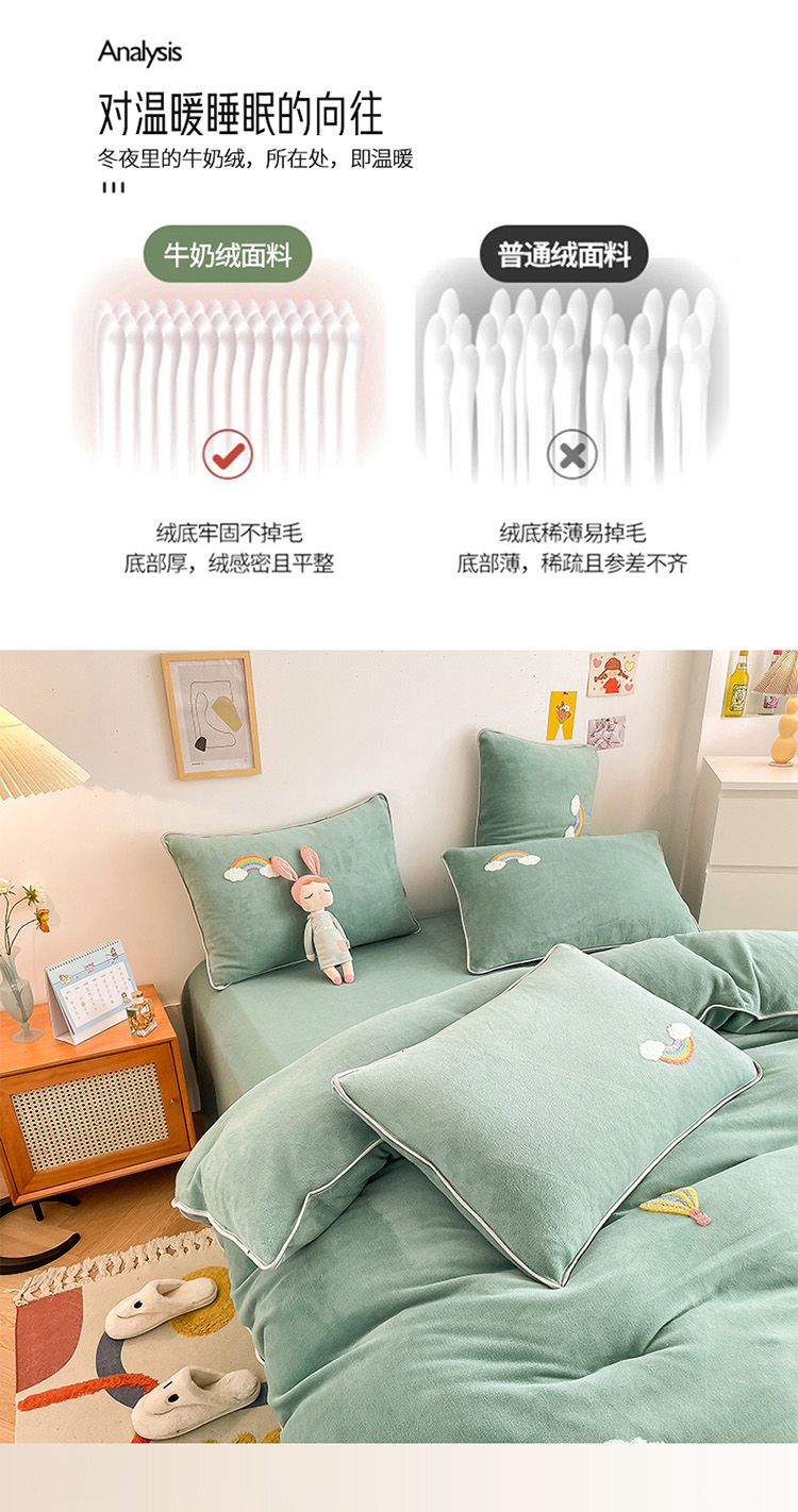 (总)绒兔兔 2021韩版柔肤棉彩虹刺绣四件套,湖蓝,奶白,牛油果绿,皮粉,绅士灰
